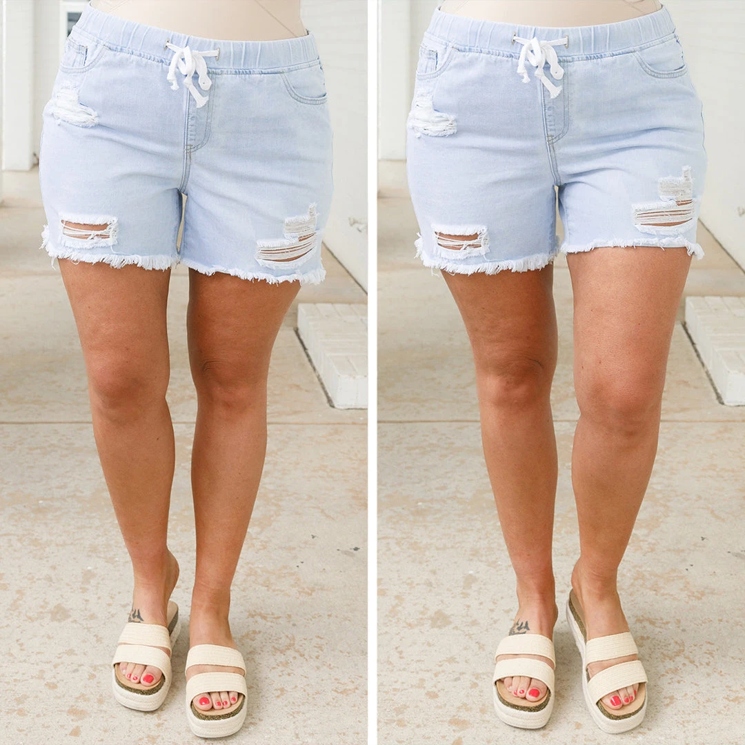 These shorts will easily become your new faves! They have a trendy light wash and a comfy fit that is super sweet! The distressed design is a season favorite! Pair these shorts with a sassy top or graphic tee for a classic chic look!