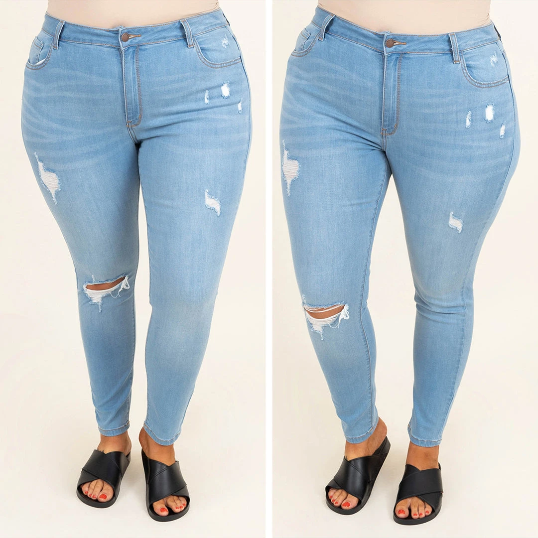 Show off your beauty in these jeans! These have a light wash color that is so trendy for this time of year and a very light distressed style that is so in! The skinny design of these is so classically chic simply style them with any top for a perfect outfit every time!
