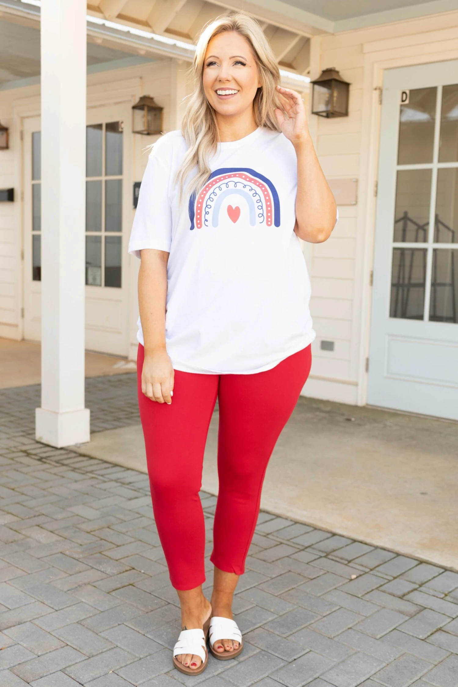 A little edgy, a little sophisticated, and a whole lotta comfy!! These are the perfect red, stretchy pants to wear for so many occasions! We love them paired with tunics, tops, and even for work with a dressy top! So versatile, which makes them a closet staple!