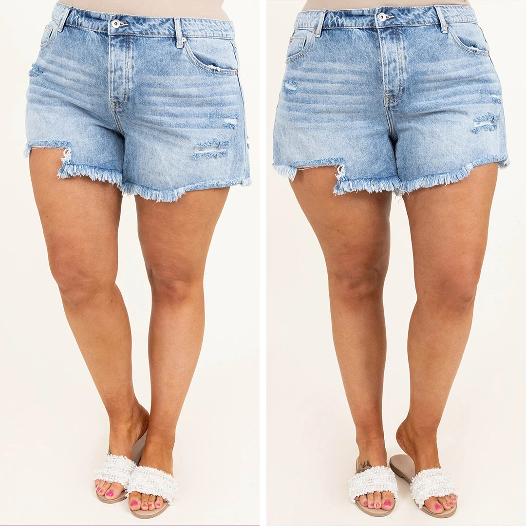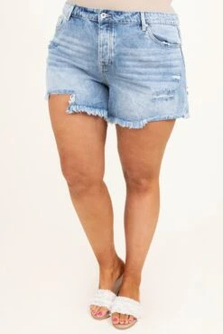 These shorts will be your new closet staple! These cuties have a trendy medium wash with a distressed look to give them some edge! These are perfect for pairing with any top and some cute shoes for an easy but chic look!Â