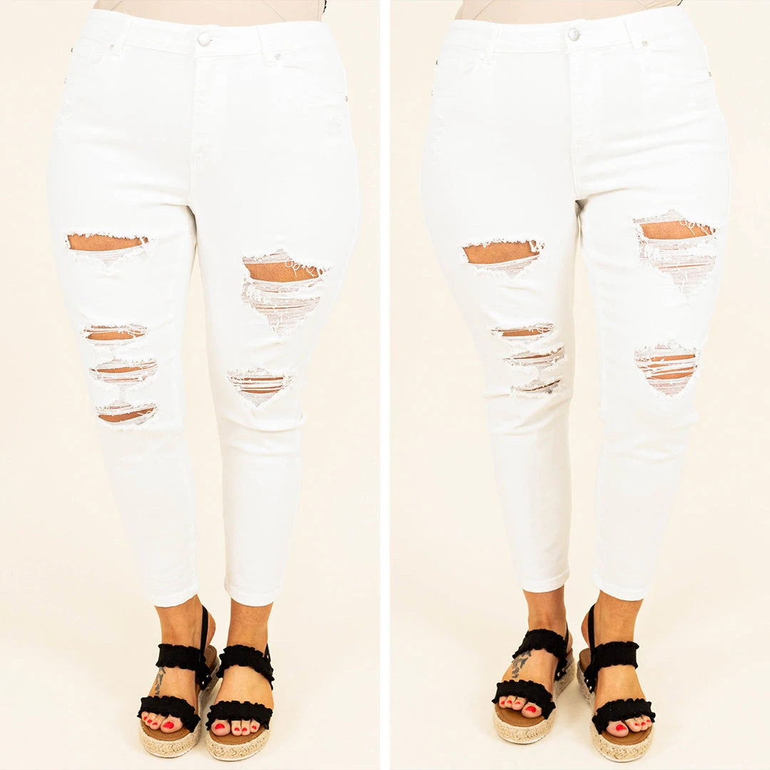 Spring into action and grab these FAB jeans before it’s too late! The classic white color and trendy distressed design are perfect for the season! The stretchy, figure flattering fit is great for all day wear! We see these jeans styled with a sassy top and cute accessories for a bold chic look!