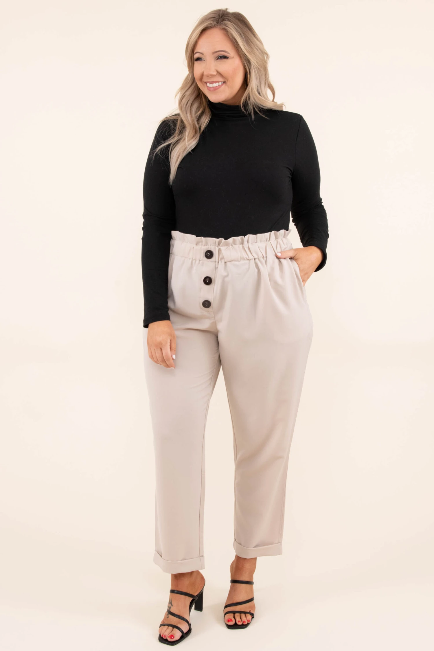 Calling all boss babes, these are your new go to work pants! These stylish yet professional pants feature faux buttons and a tapered fit on the leg. Pair these with a cute top, fun shoes, and your favorite accessories for a work look that will make waves!