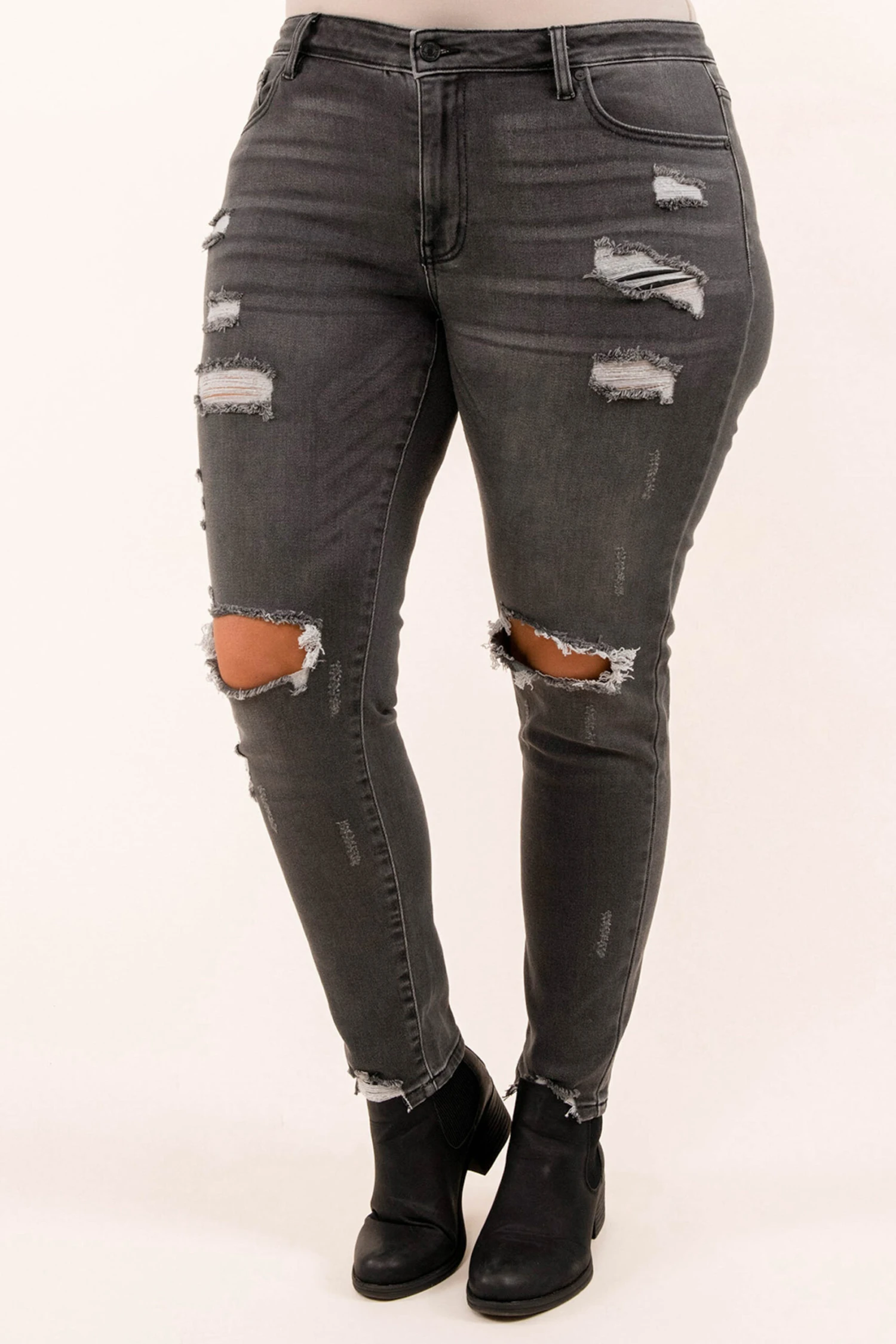 Everyone will be looking your way when you wear these jeans! The fit, distressing, and grey color make them so trendy and perfect for the season! These skinnies are sure to look great with any color tops, tunic, or jacket!