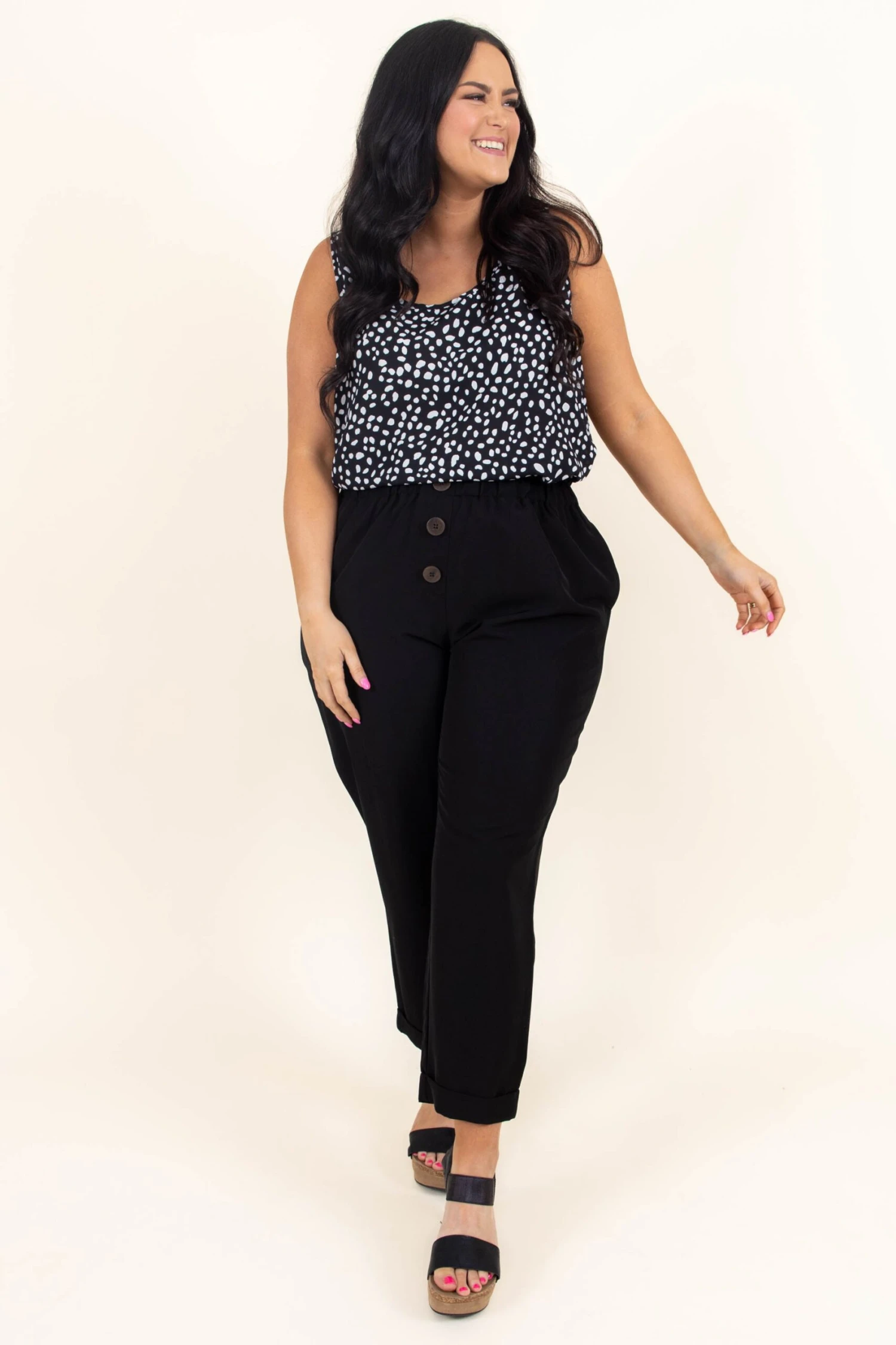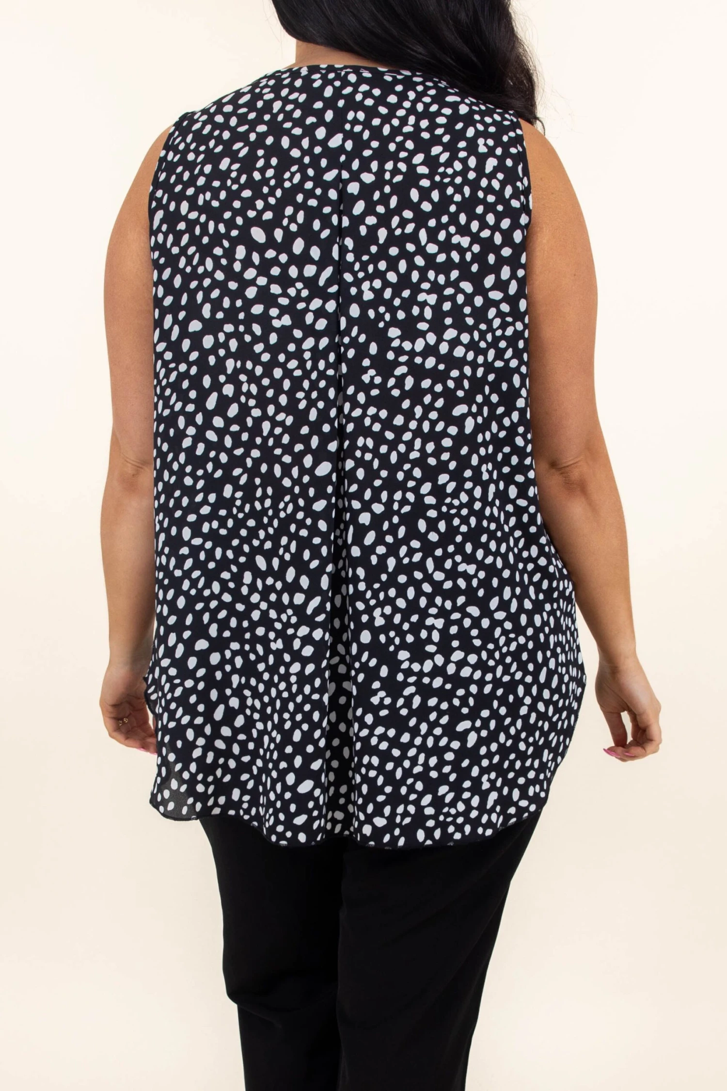 Join the club and grab this beauty! This top has a classic black color with a super trendy leopard pattern that is a season fave! This tank has a flowy, flirty fit that is perfect for any occasion! Style it with some cute pants and a cute cardi for the office or skinnies and sandals for a classy casual look!
