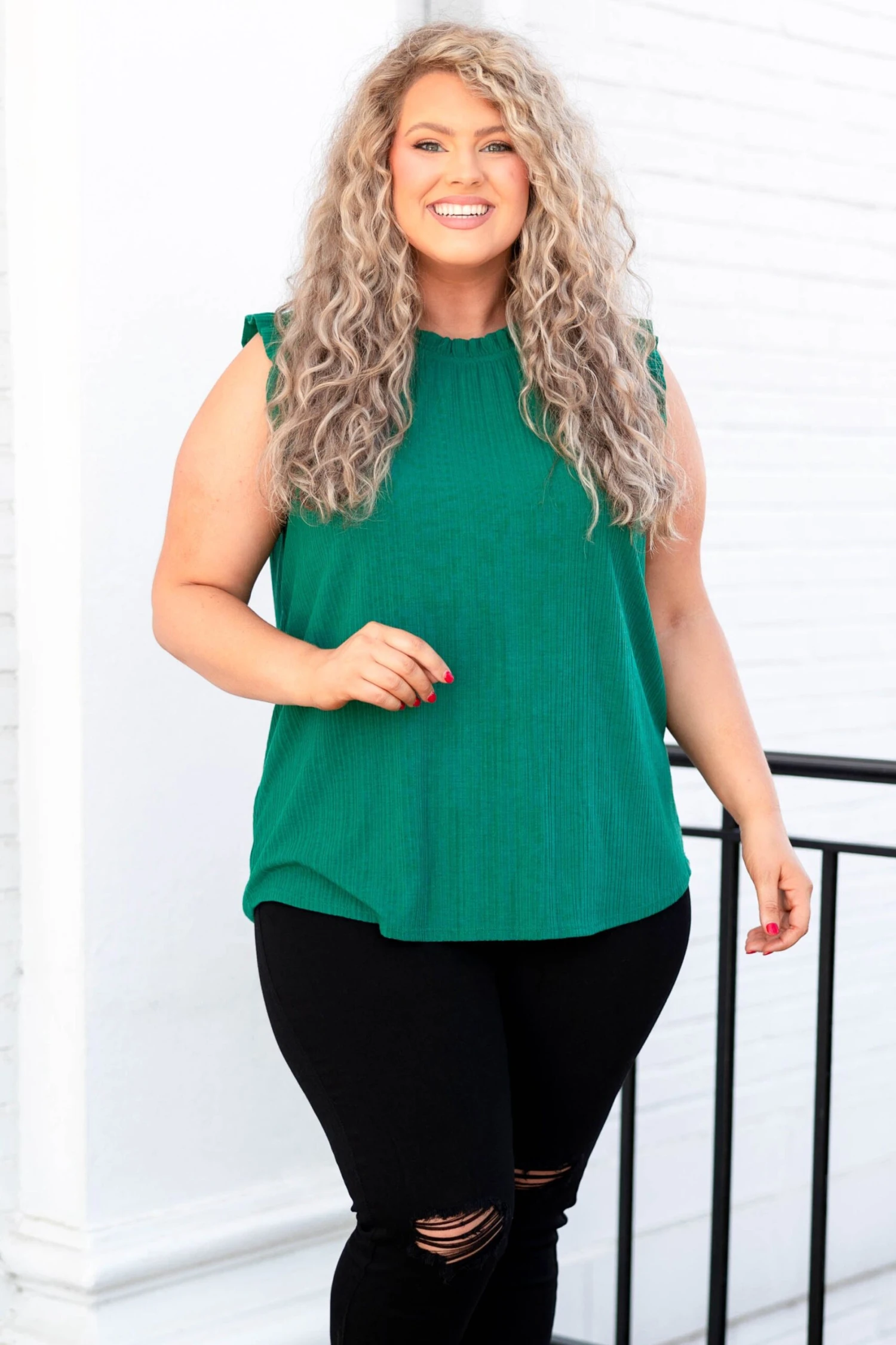 This beautiful top will definitely work in your favor this season! This top has a gorgeous teal color with dainty ruffles along the neckline and sleeves! The flowy, figure flattering fit is perfect for all day wear! Style this top with some skinnies or patterned pants for a classic chic look!