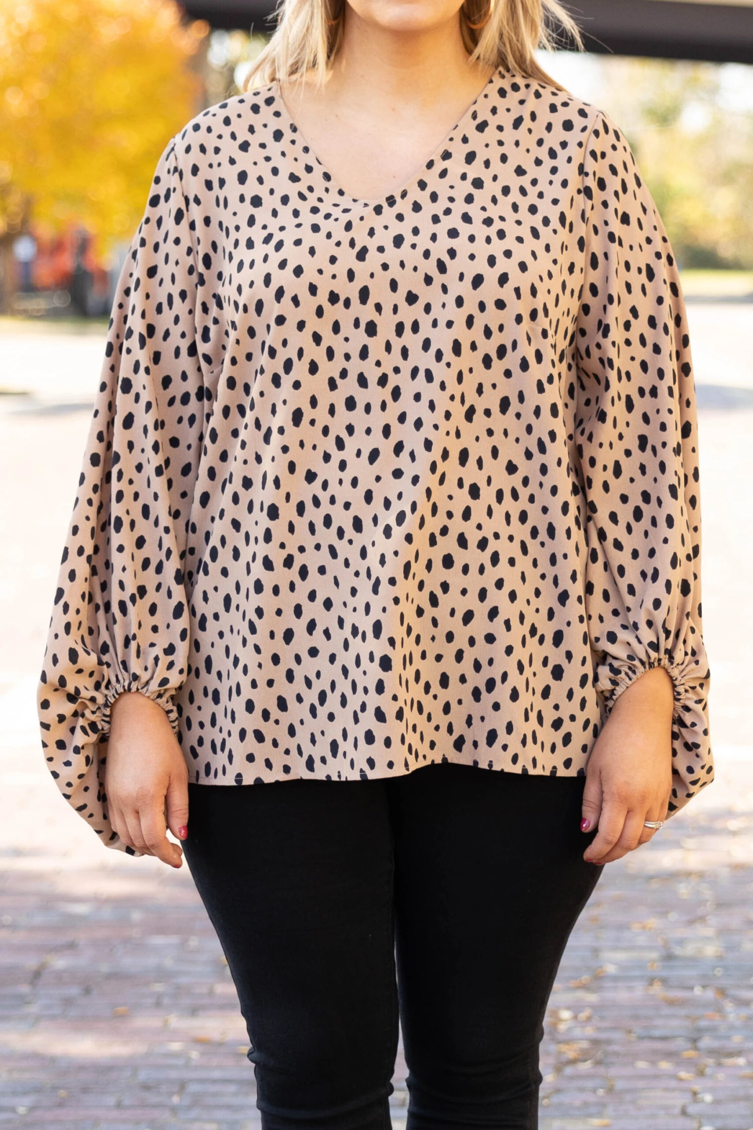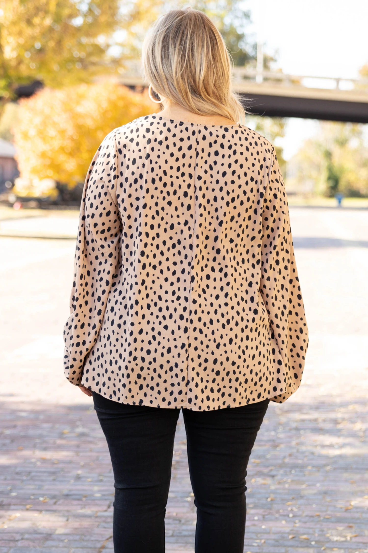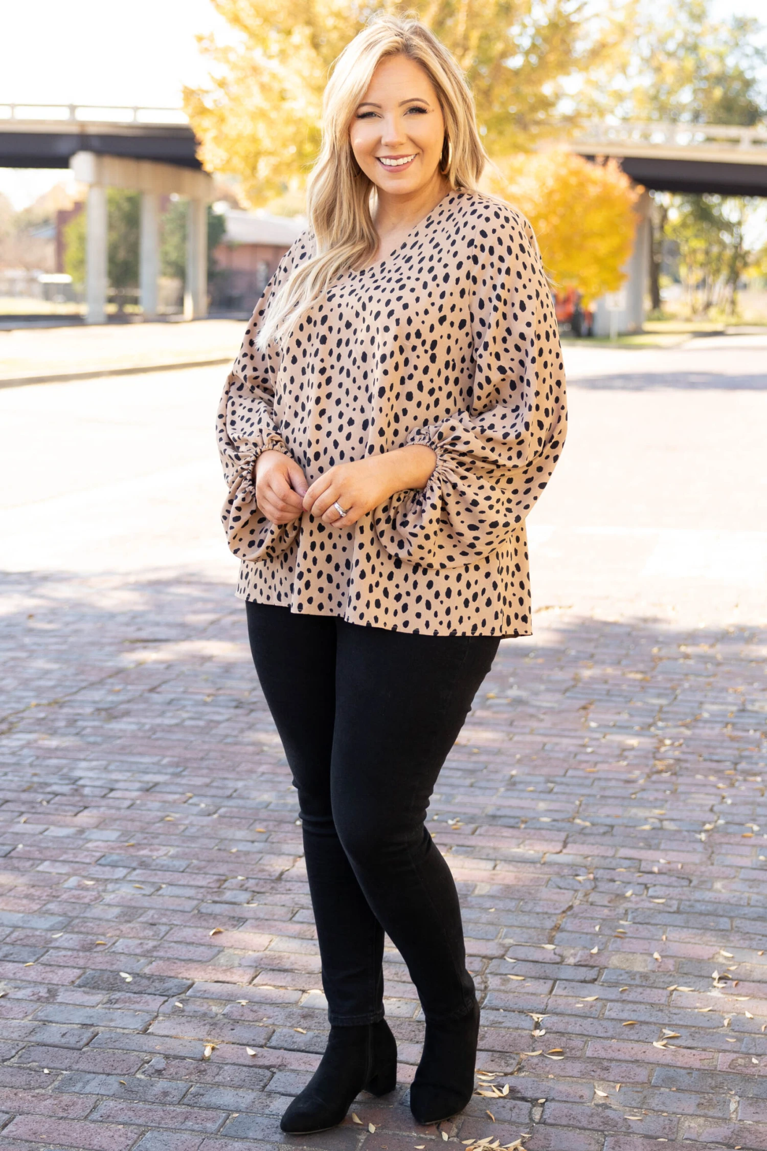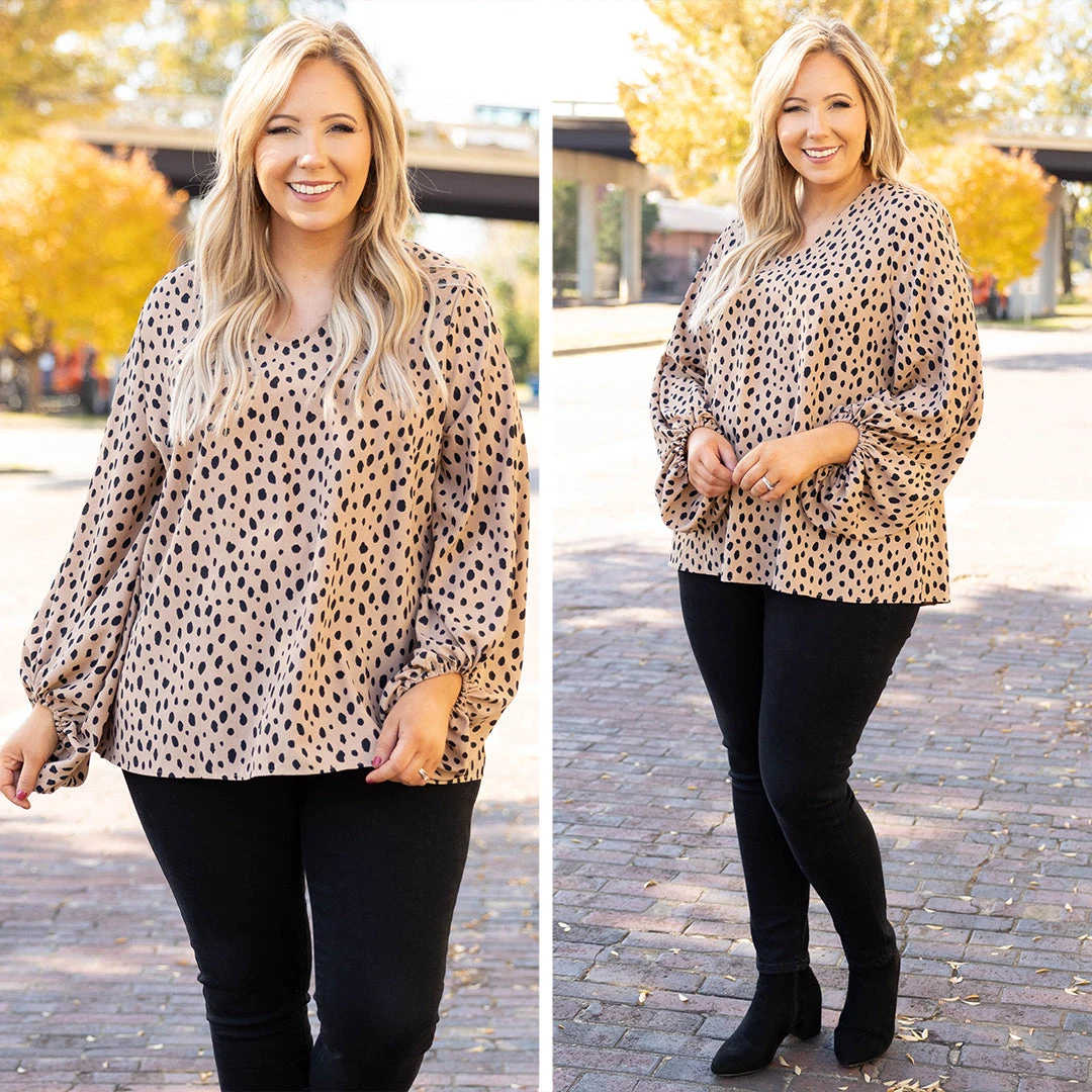 This new top has found it’s way into our hearts! It has fun bubble sleeves and a trendy leopard print. The figure flattering fit is perfect for all day wear! Style with black jeans and booties for a chic outfit!