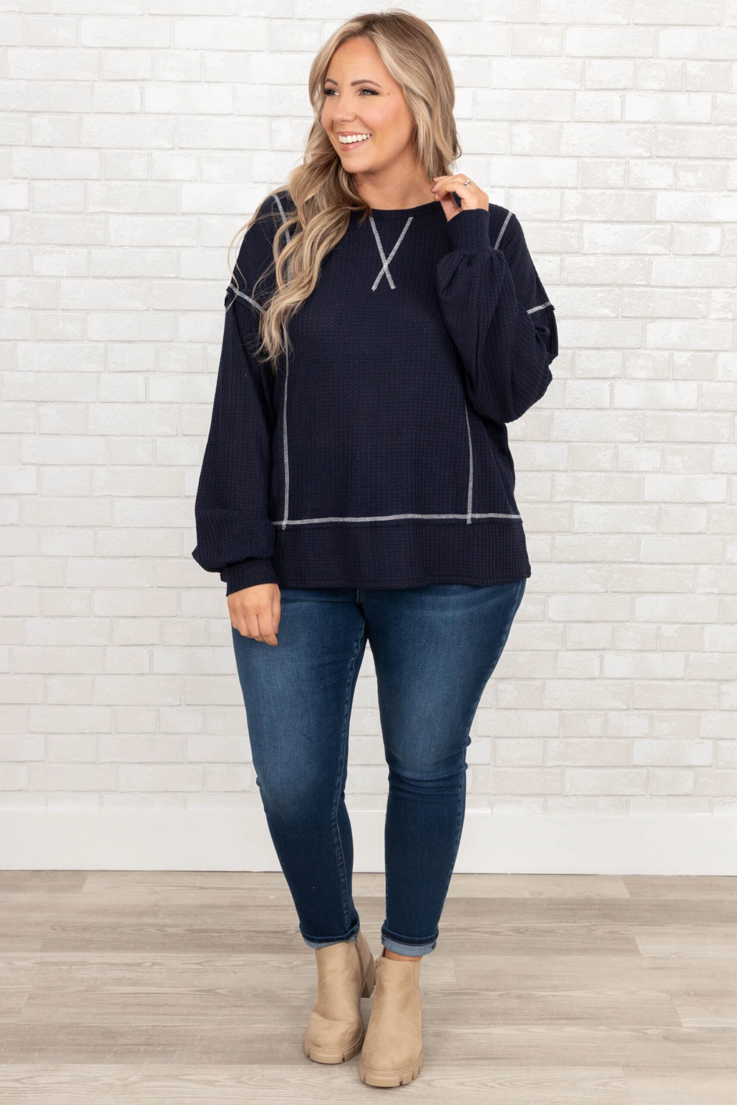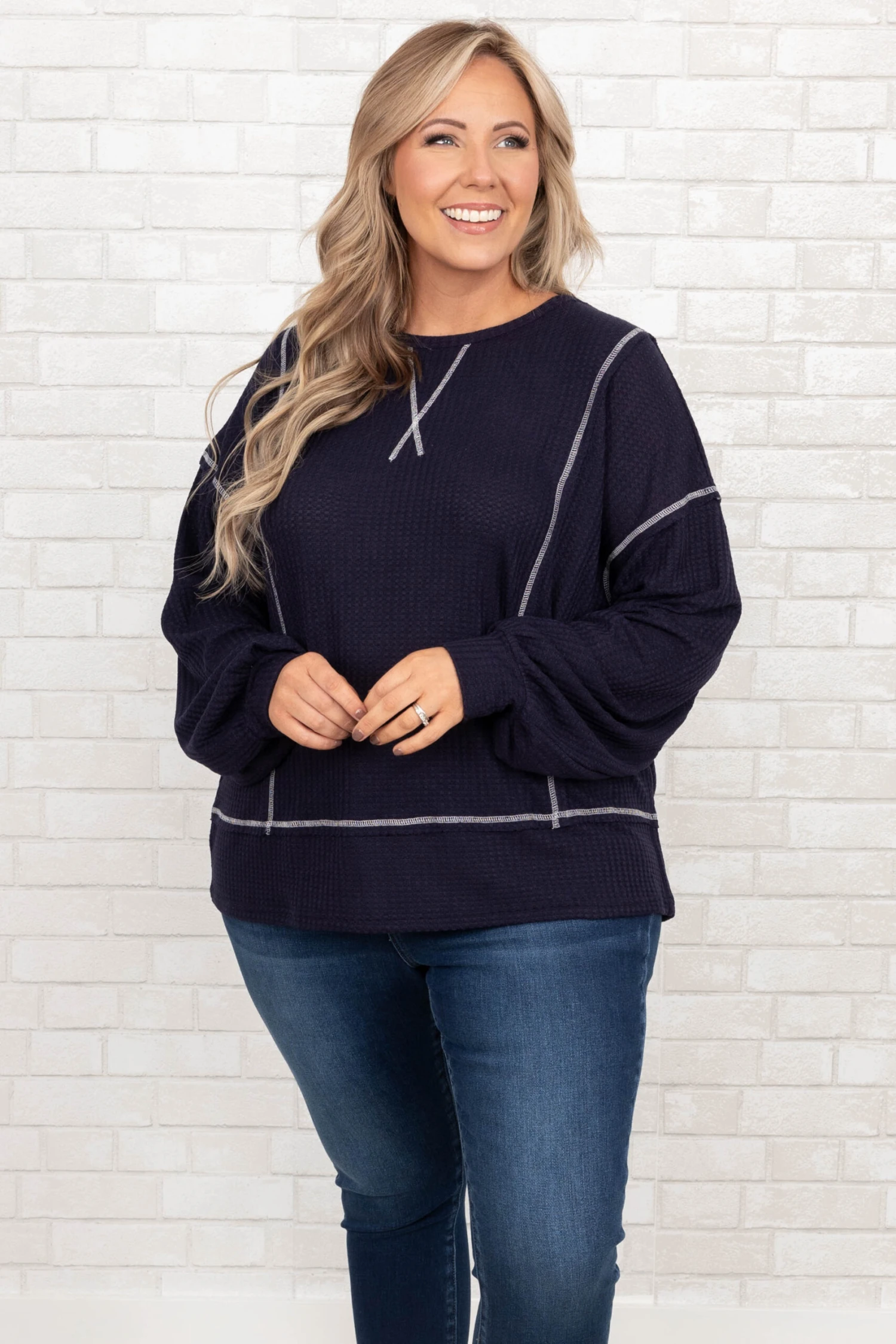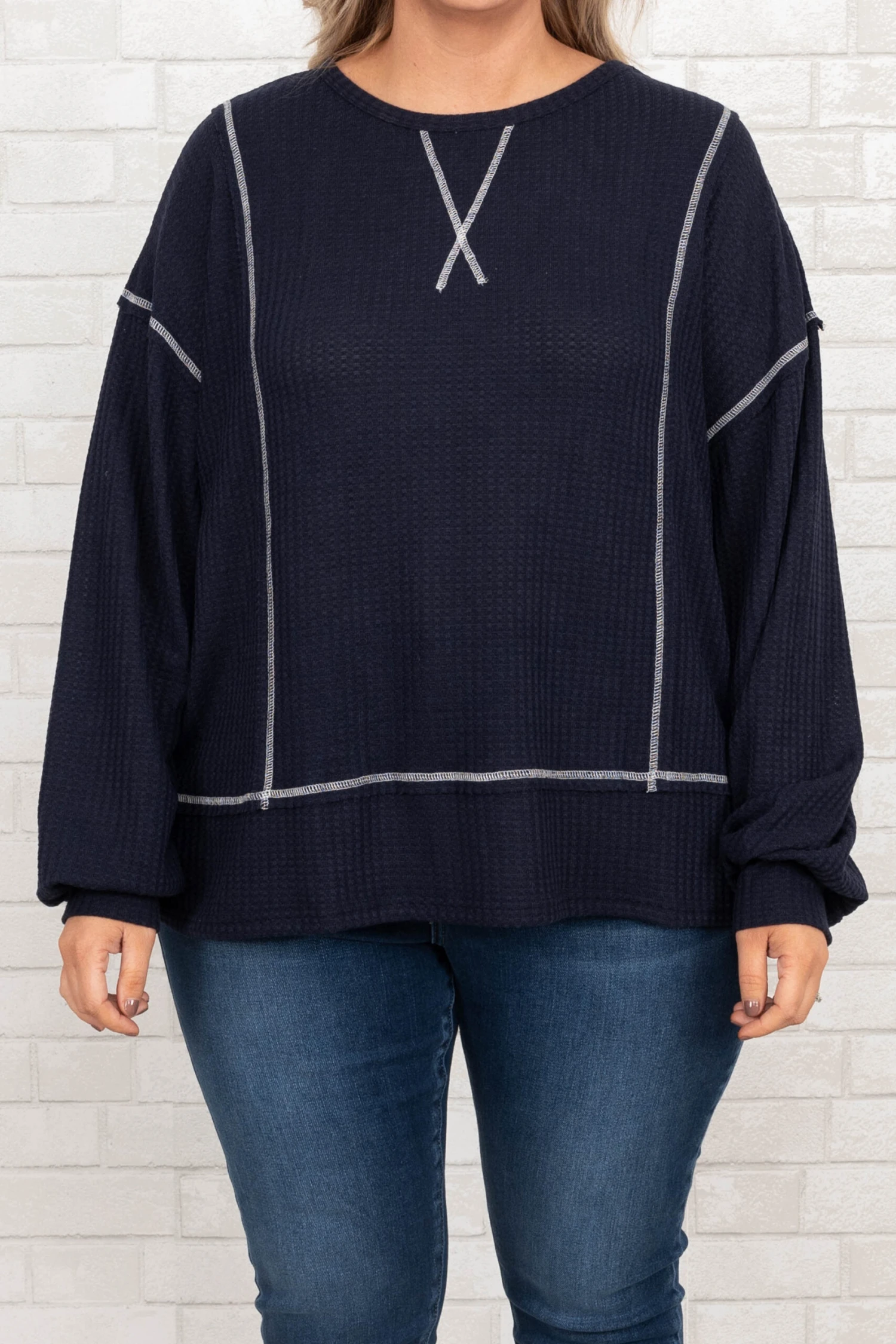 We simply love this adorable top! This top has a lovely navy color with trendy bubble sleeves and a figure flattering fit that is super sweet! Style this top with skinnies or leggings for a casual chic look!