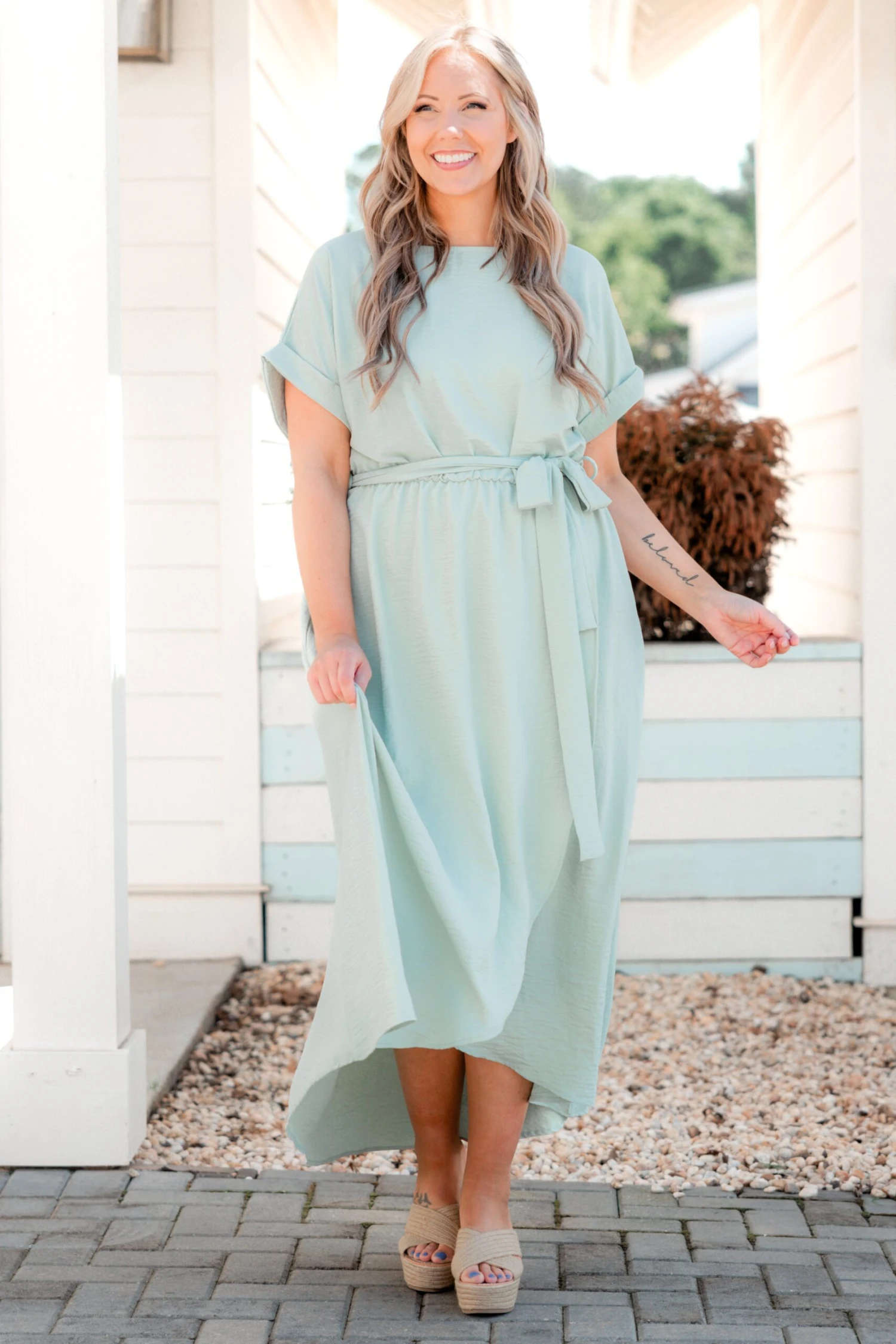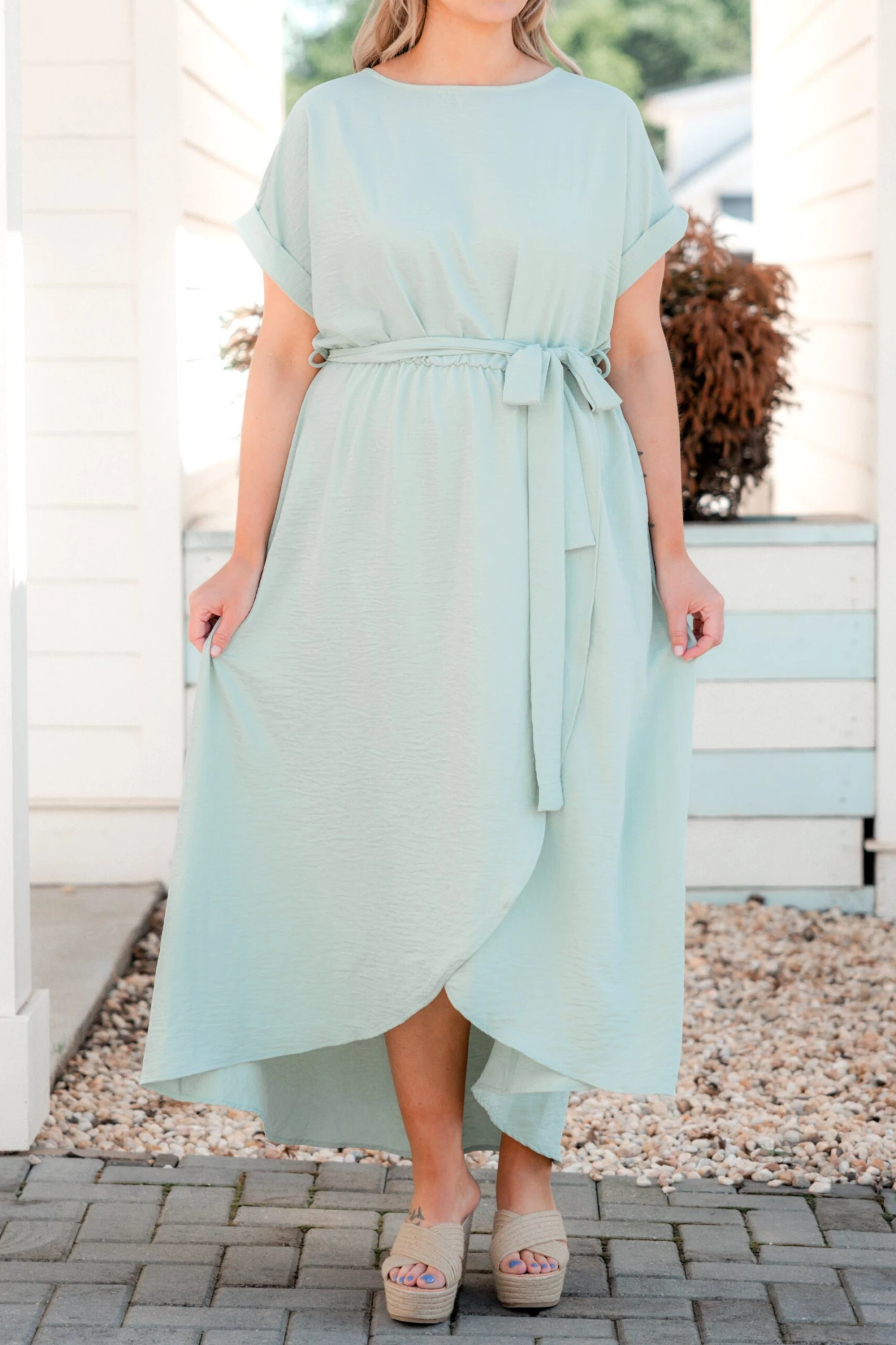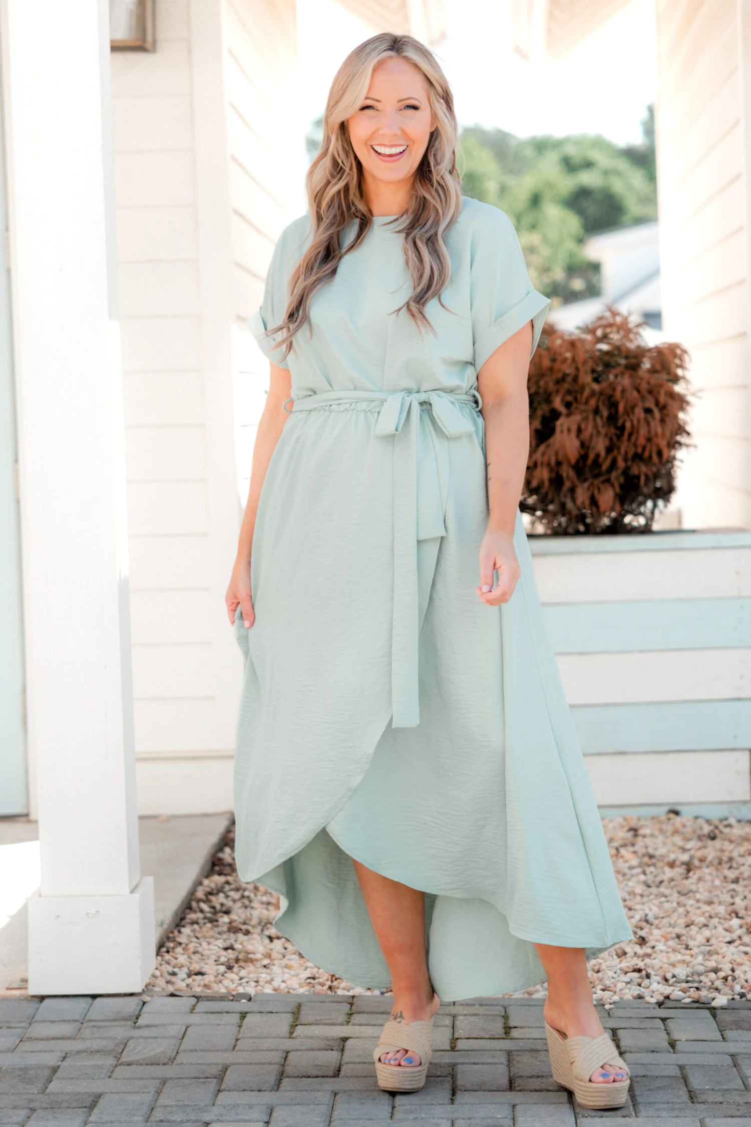You will be stunning in this dress! It has a chic sage color you can dress up or down for every occasion! It’s comfortable for all-day wear, has a figure-flattering fit, and features the cutest tied waistline! Pair this dress with heels or wedges for an effortlessly chic outfit!