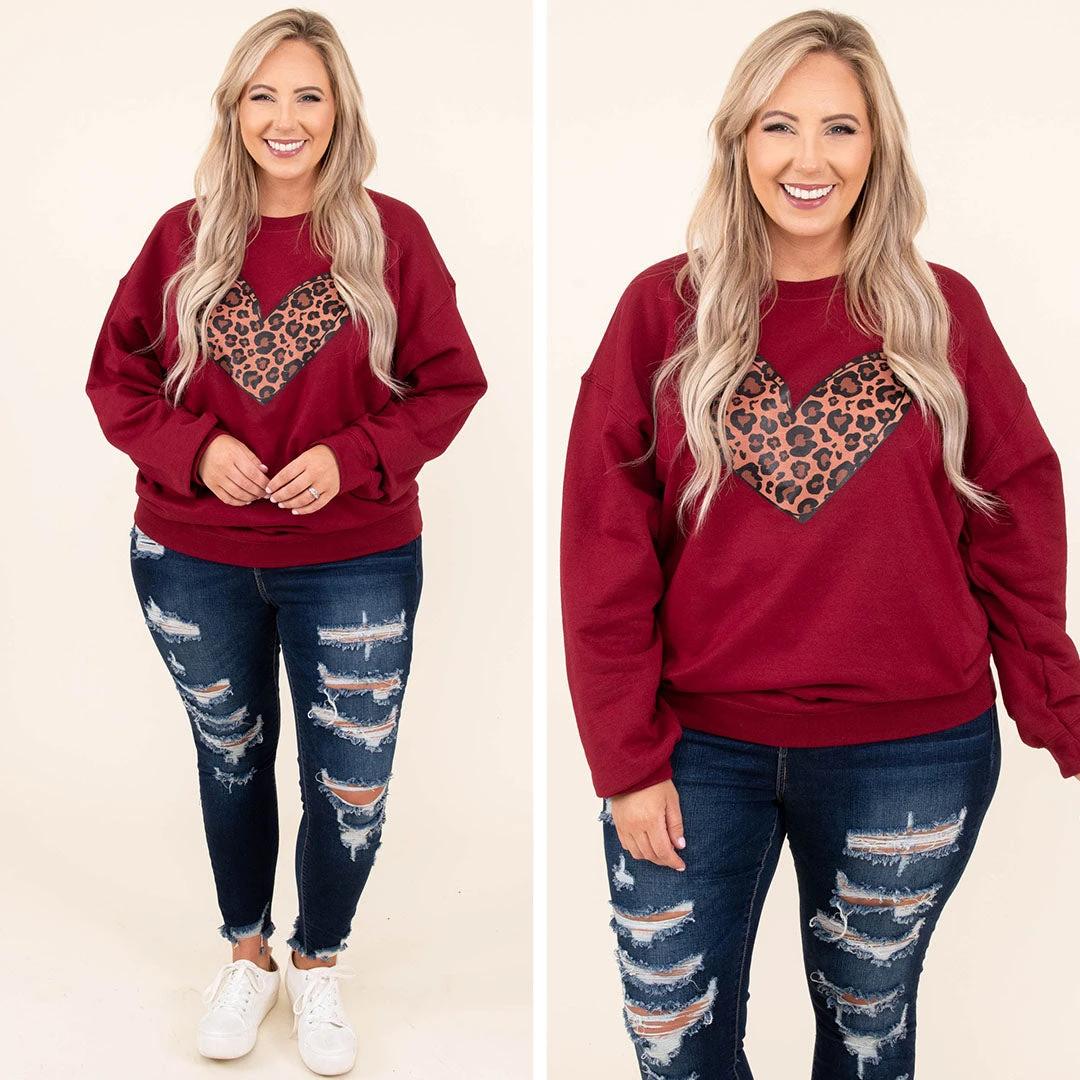 This sweatshirt has our hearts! This trendy top has a simple graphic design with neutral colors you can pair with everything in your wardrobe! It’s comfortable for all-day wear, has a flowy fit to flatter your figure, and is perfect for the season! Style this top with skinnies or shorts for a fun and flirty look!