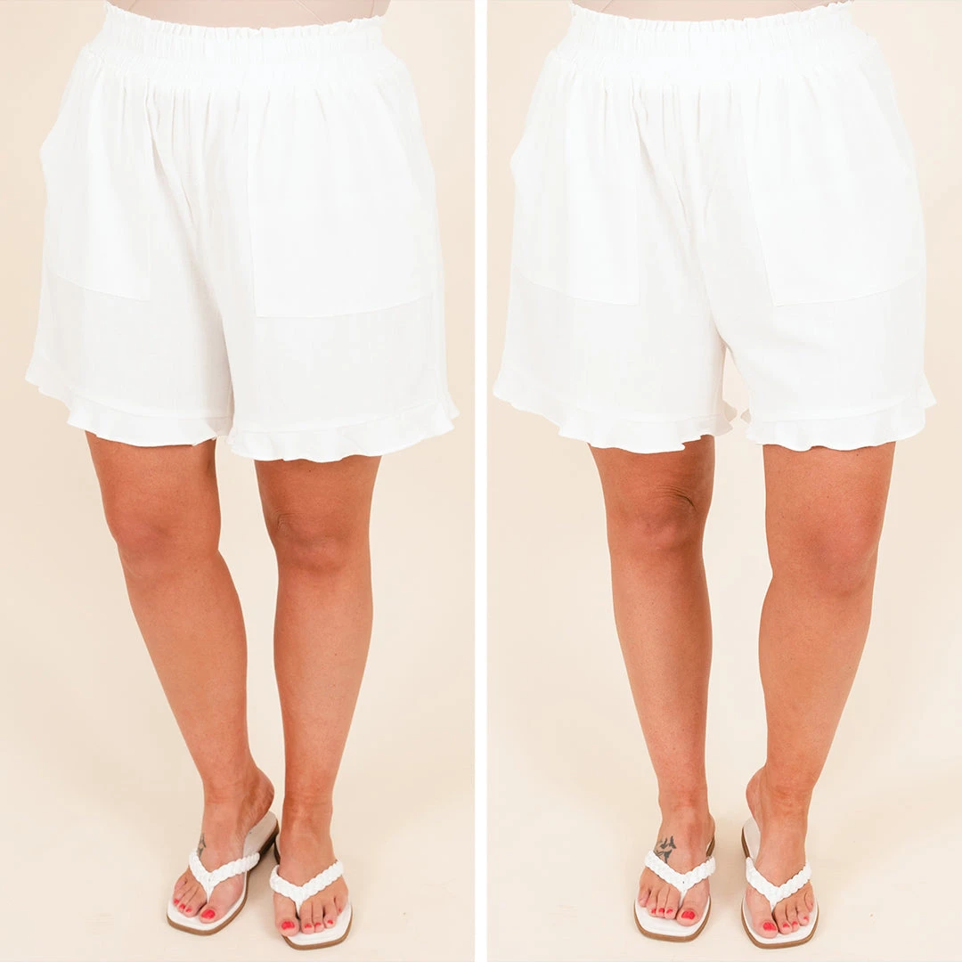 These shorts will be your new faves! They offer a timeless cream color perfect for any warm weather look! Featuring an elastic waistband, plus a figure flattering fit, these shorts will be your go-to for comfortable style!