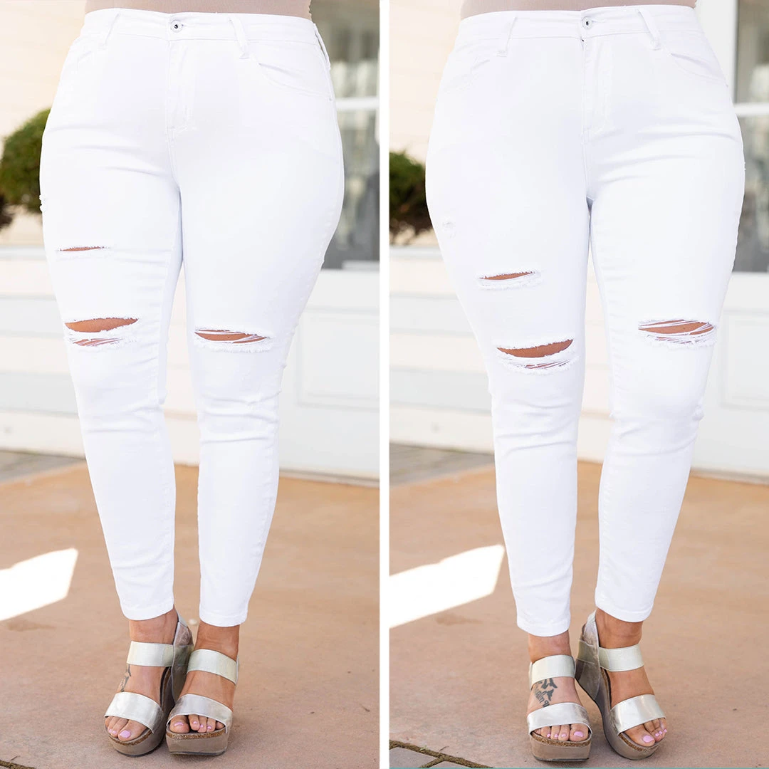 We love these jeans! These mid-rise white-wash jeans have heavy distressing and are super flattering. Plus, they are so easy to style! Pair them with a cute tank or a flowy tunic for a trendy look!
