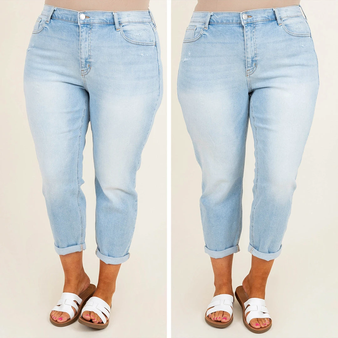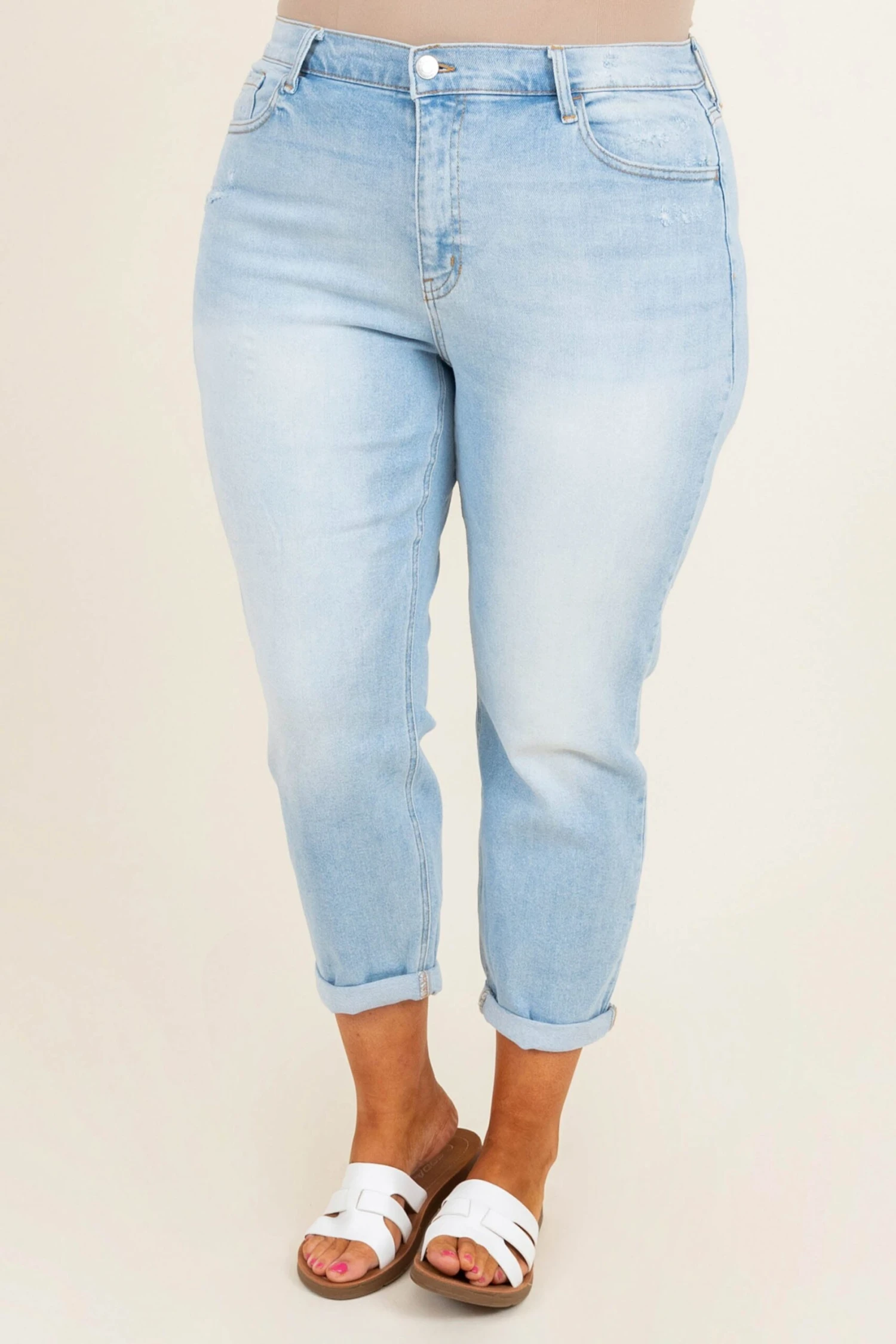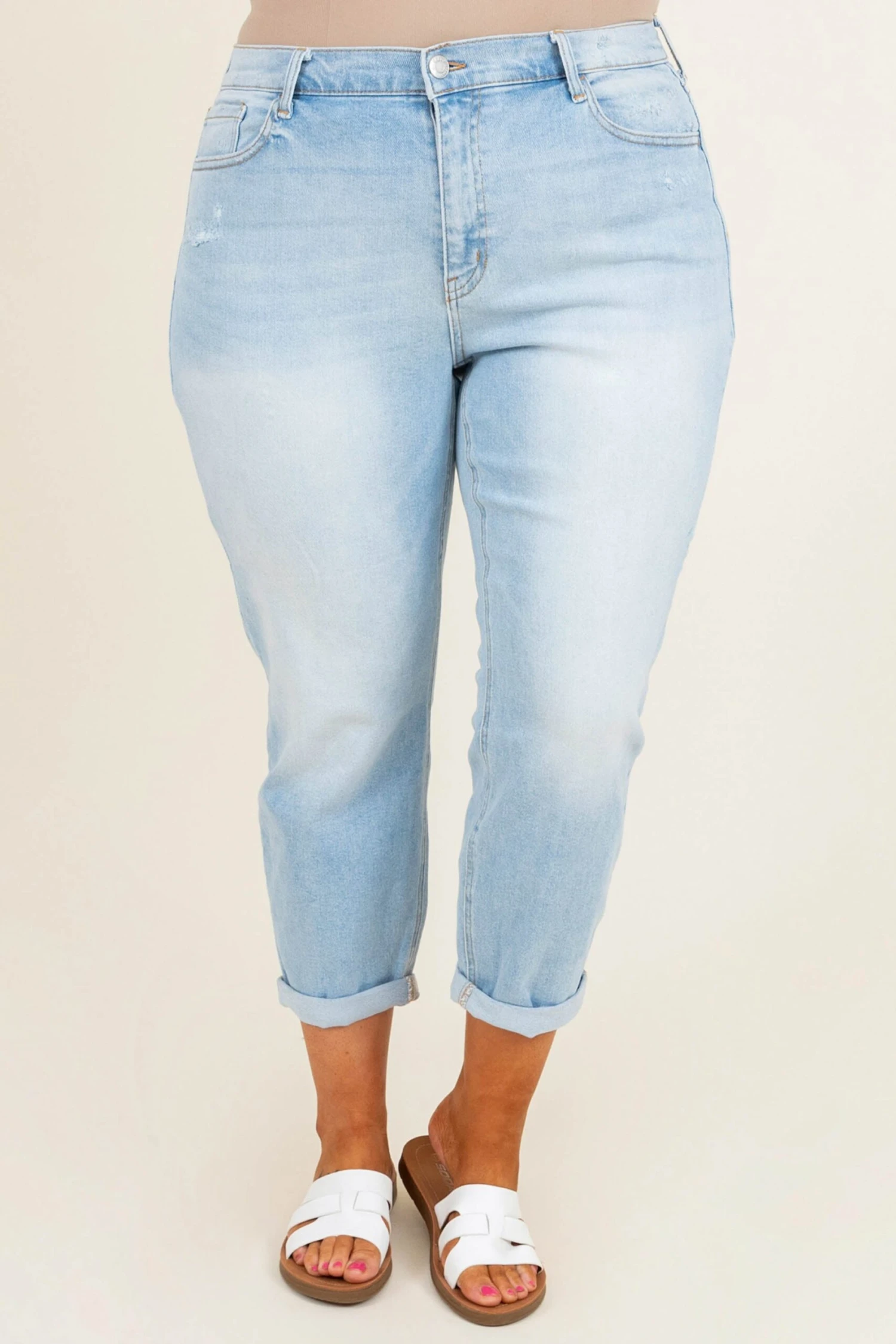 These jeans were made just fine! The mom jean style is so trendy and the cropped style is so cute! We love light wash jeans in the warm months and the light distressing is so perfect! Style these with a graphic tee and some sandals for a perfect look!Â