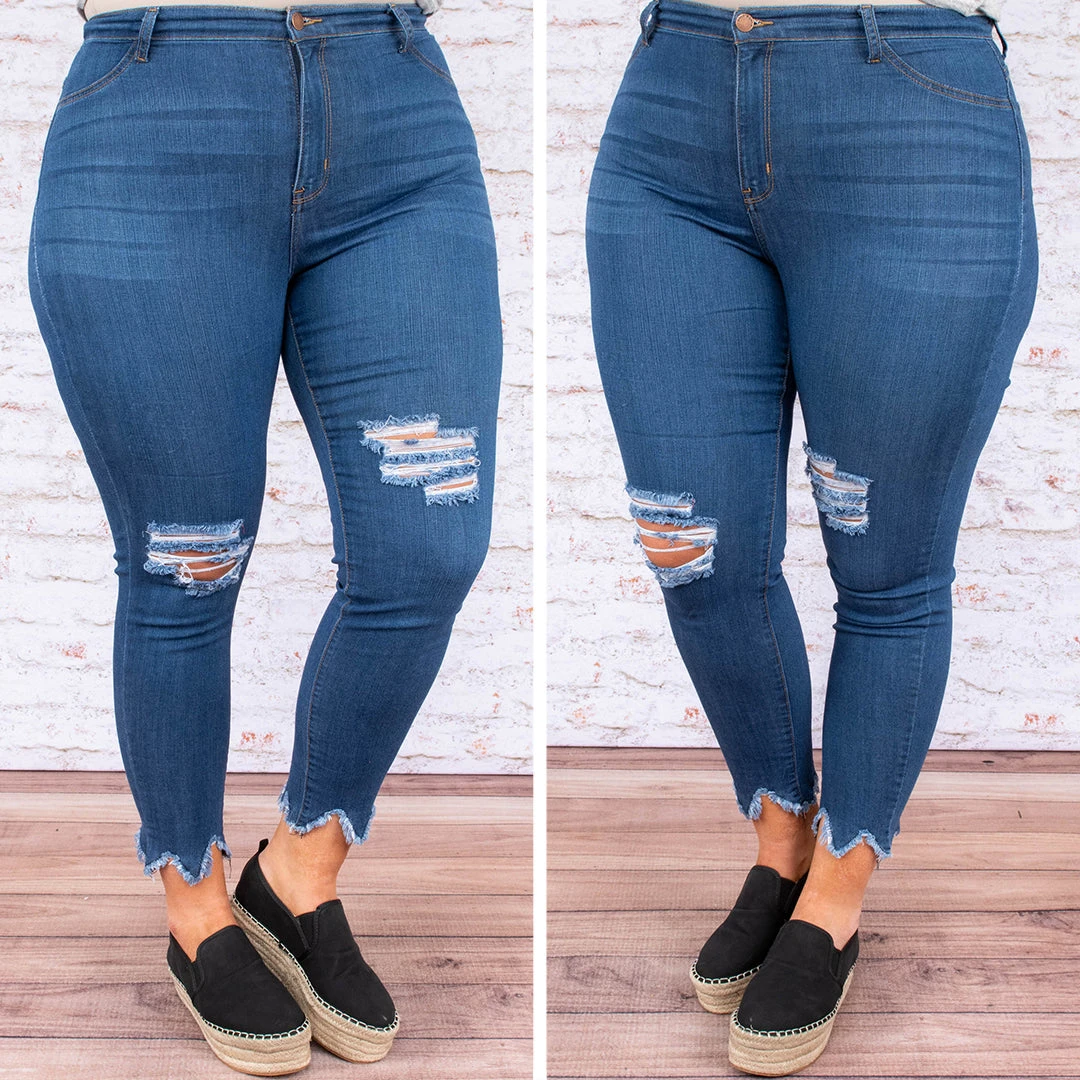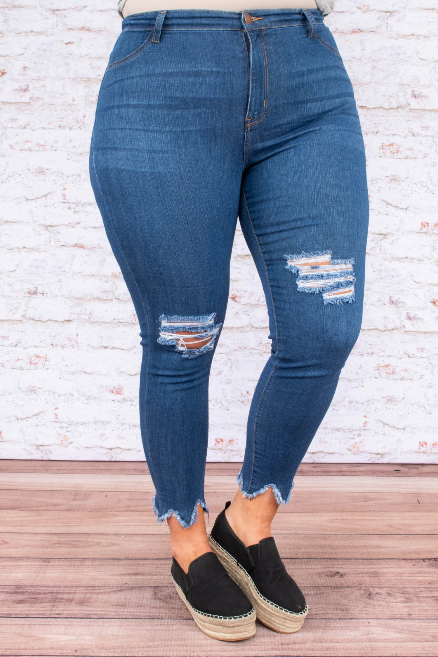 Every hour is magic in these trendy skinnies! They have a chic medium wash, high waist fit, and cool distressing on the knee! Toss them on with a flowy top and wedges for the perfect outfit!