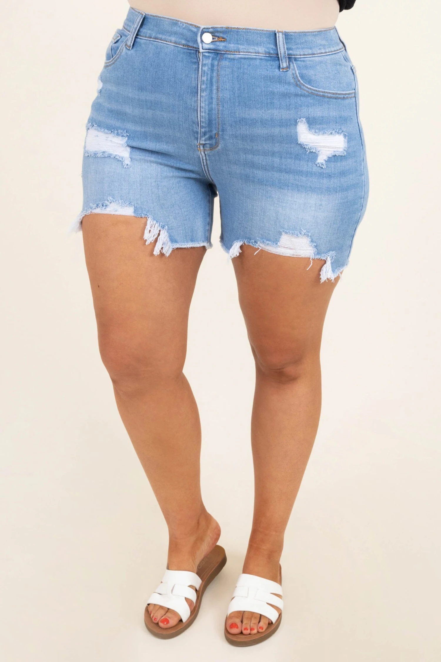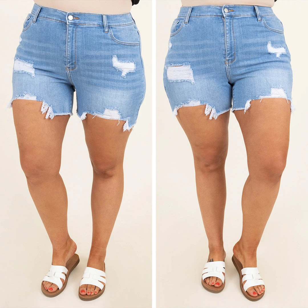 Make any outfit with these shorts! These have a trendy light wash color with a distressed style that is so in right now! Style them with a basic top and some sandals for the perfect look!