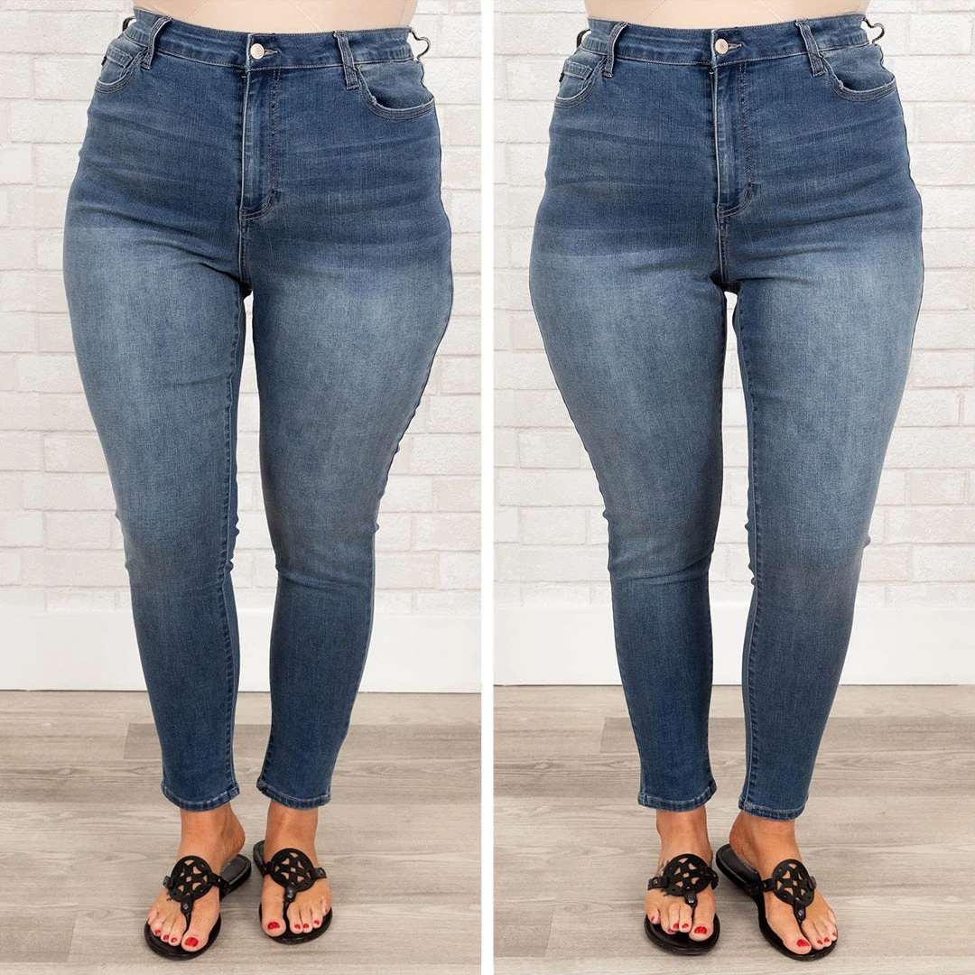 Enjoy the midnight rain in these gorgeous jeans! They have a trendy medium wash with a stretchy, comfy fit that pairs well with all of your faves! Style these jeans with a cute blouse and heels or a comfy top and sandals for a casual chic look!