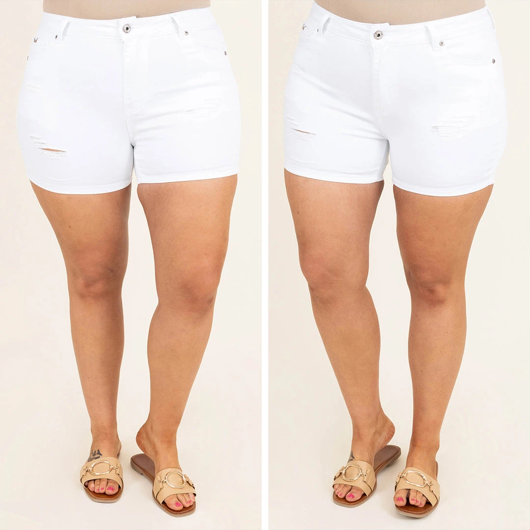 Shine in these shorts! The white color is so perfect for pairing with any top and the light distressing makes these perfect for a date night or a brunch date with your girls! Style these with any top and some sandals for a perfect look every time!