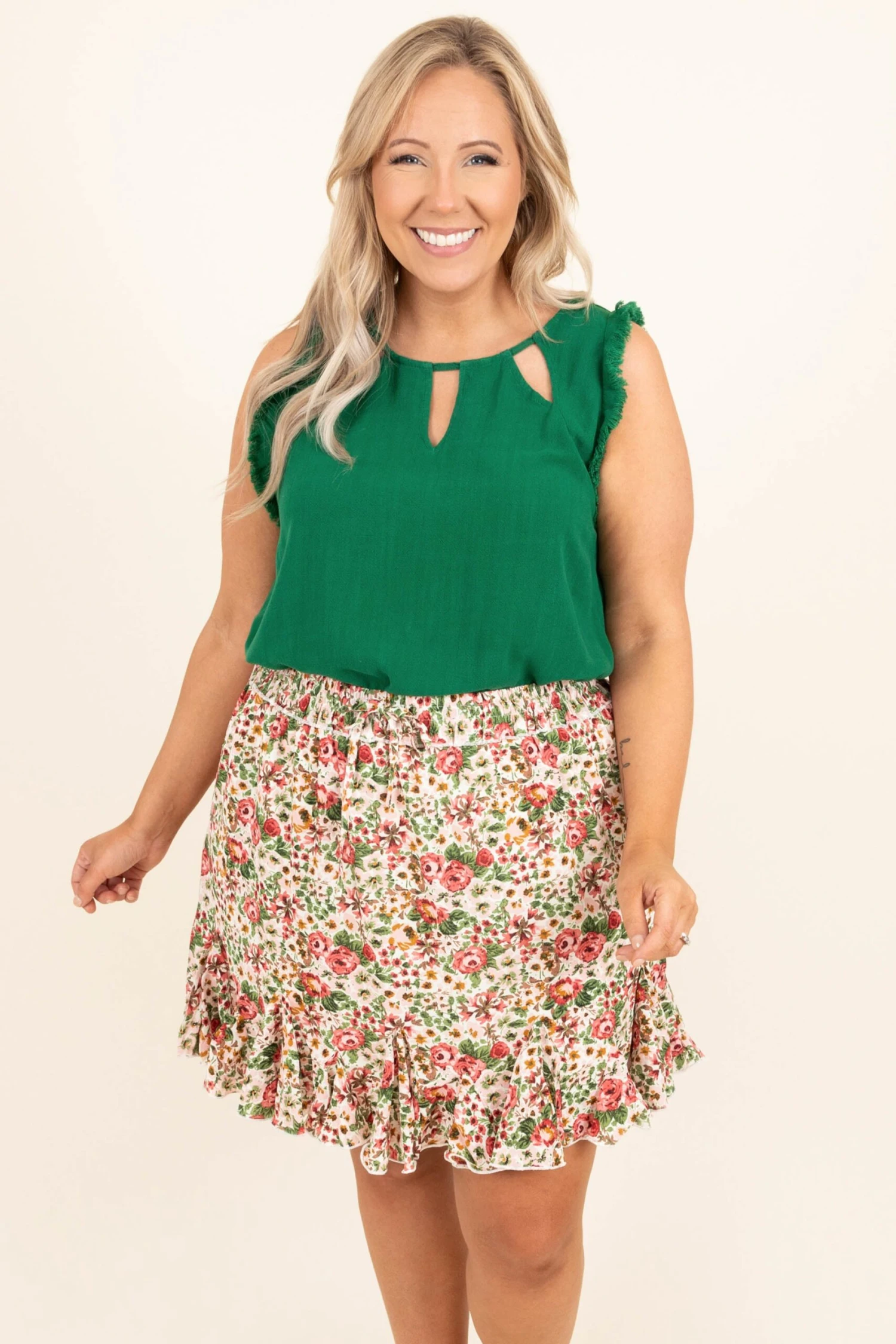 Everyone will be talking about how good you look in this top! The kelly green color is bold and fresh and the cut outs on the neckline are so trendy! This cutie is perfect paired with a patterned bottom and some sweet sandals for the perfect look!