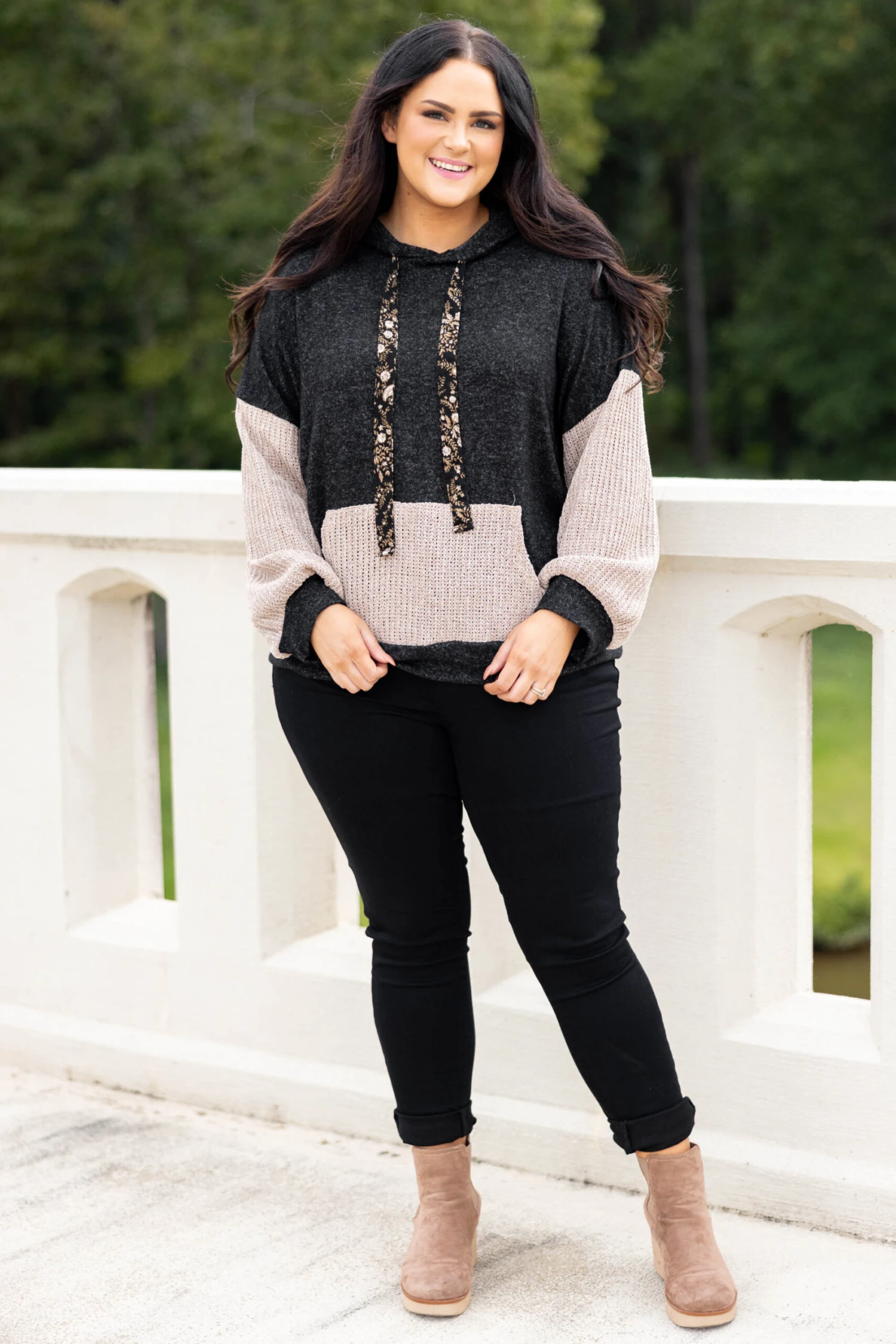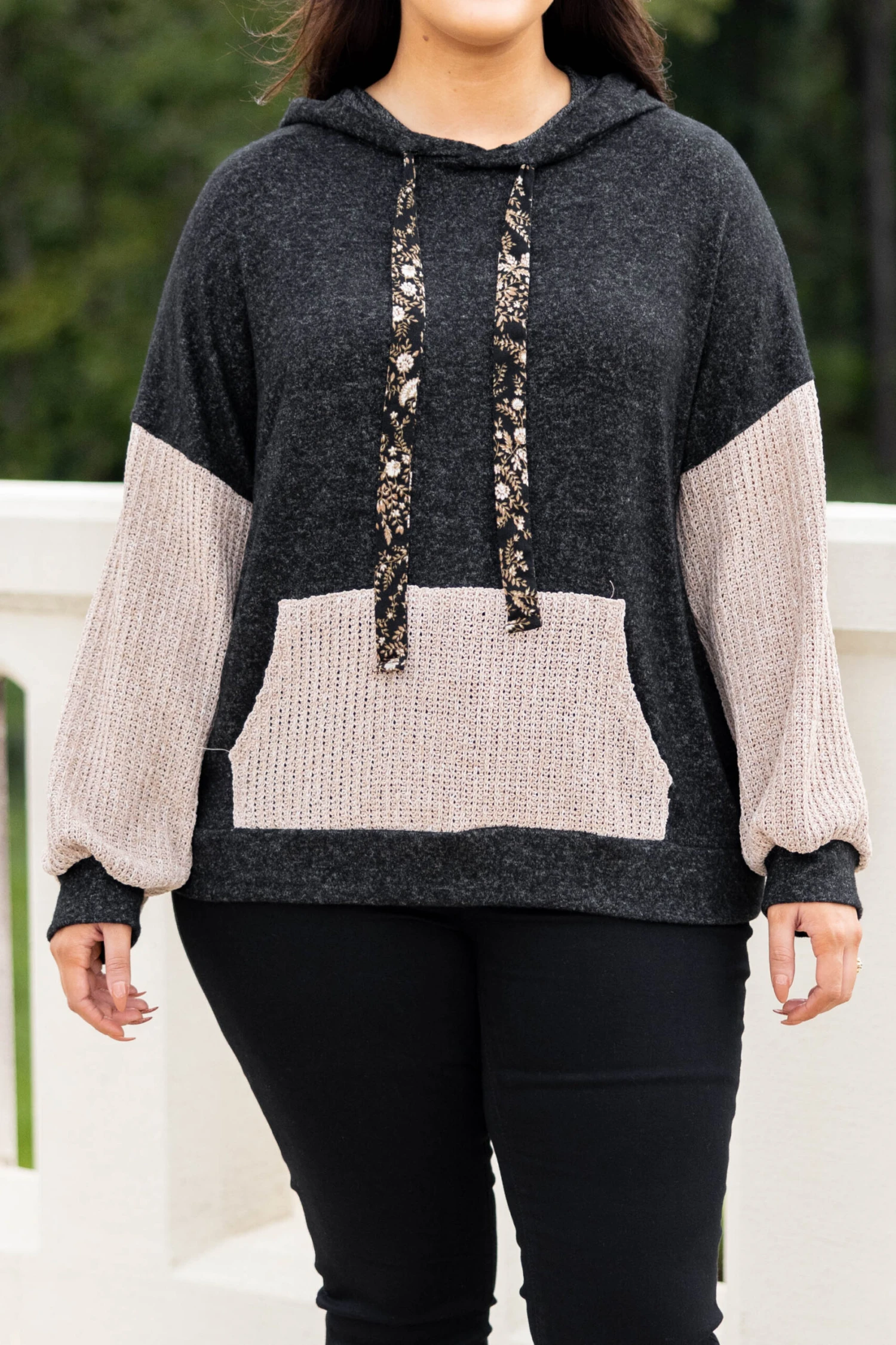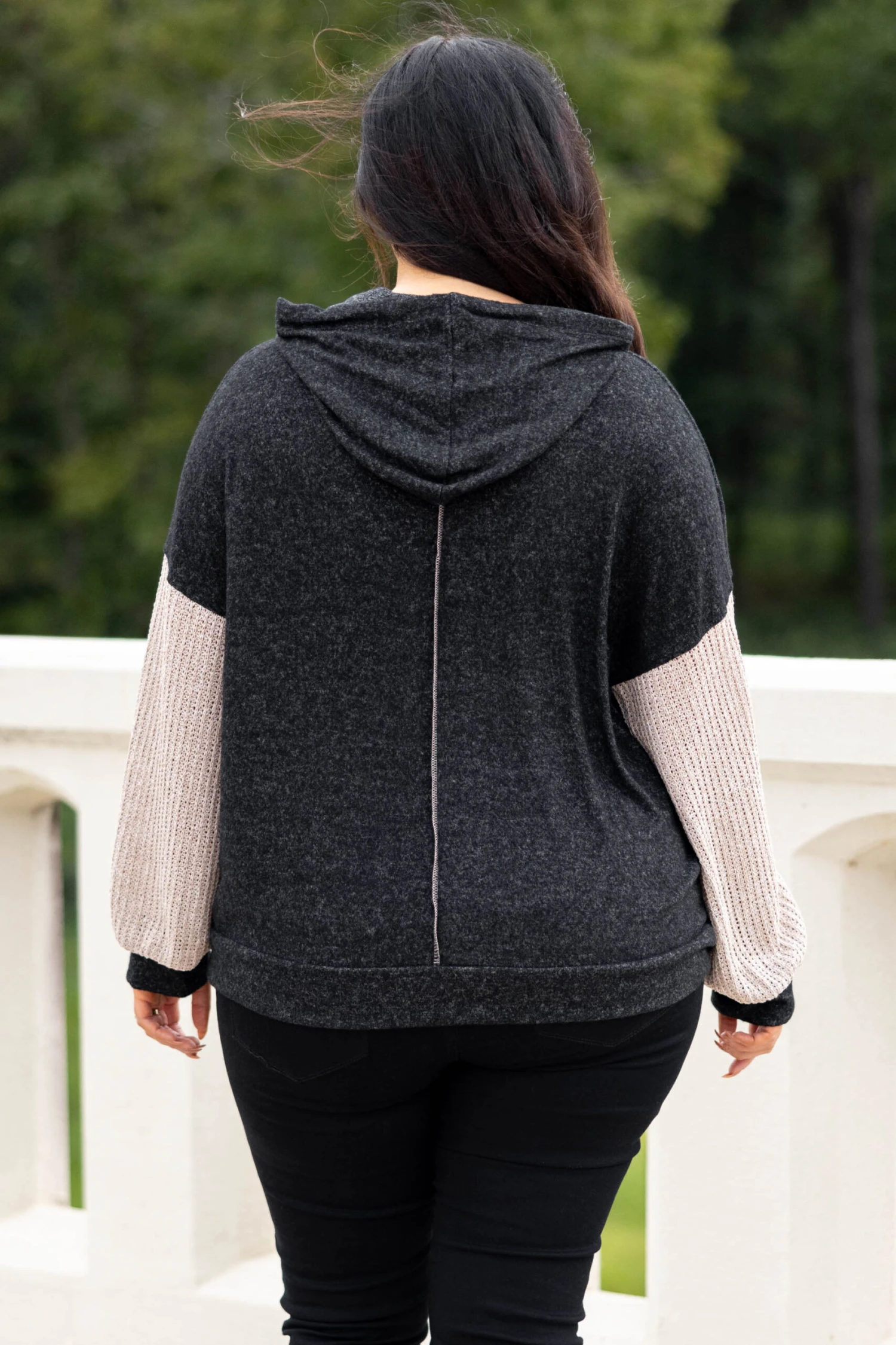 Let your passion for perfection blossom this mesmerizing hoodie! This hoodie has a neutral color mix that is perfect for the season! The mesh sleeves, front pocket and patterned ties are so unique! Pair this hoodie with some skinnies or leggings for a cozy chic look!Â