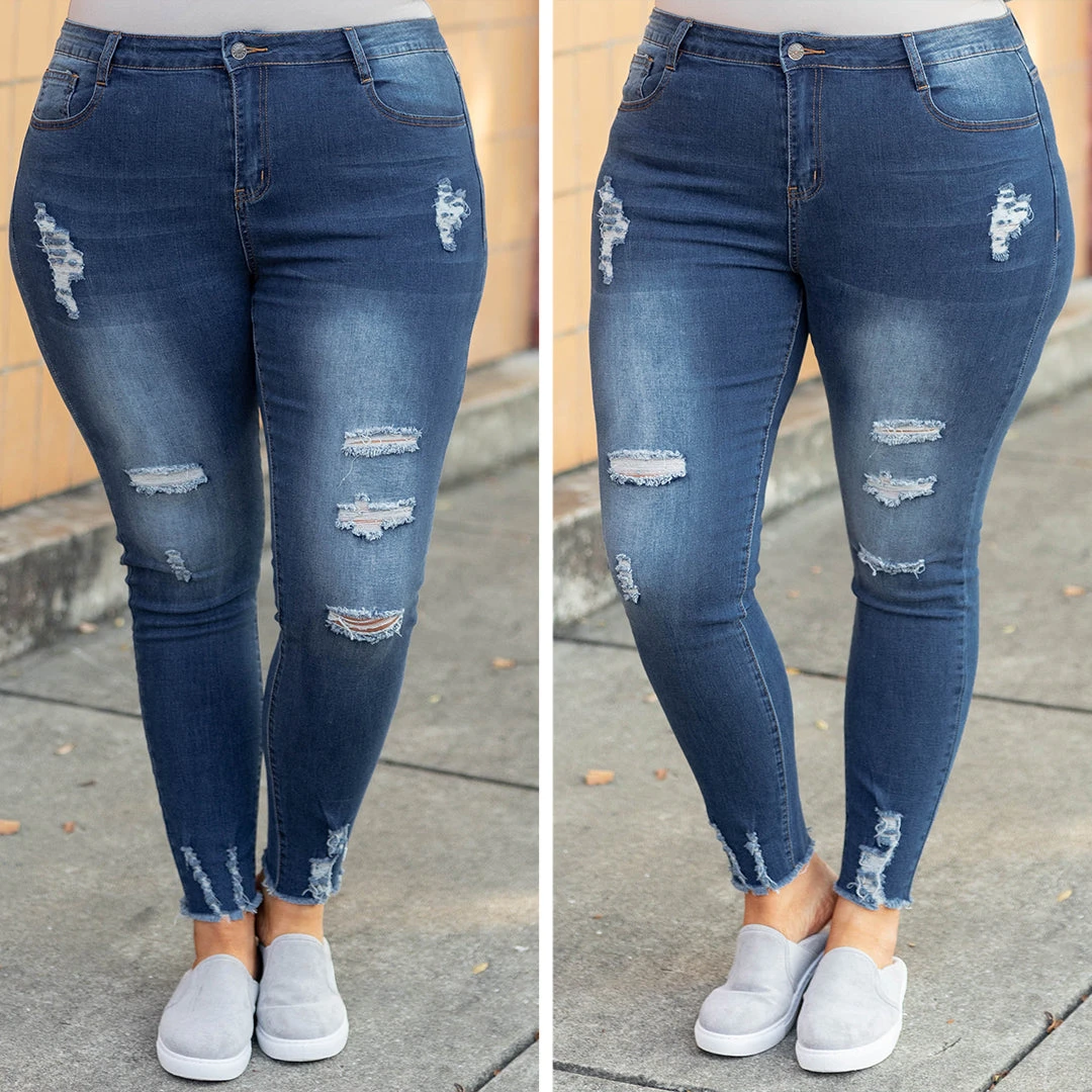 These are the perfect roaming-around jeans! These jeans have a classic dark wash you can style all season long! They’re comfortable for all-day wear, have a figure-flattering fit, and feature the cutest distressing! Simply, style these jeans with a flowy top and sandals for an effortlessly chic look!Â