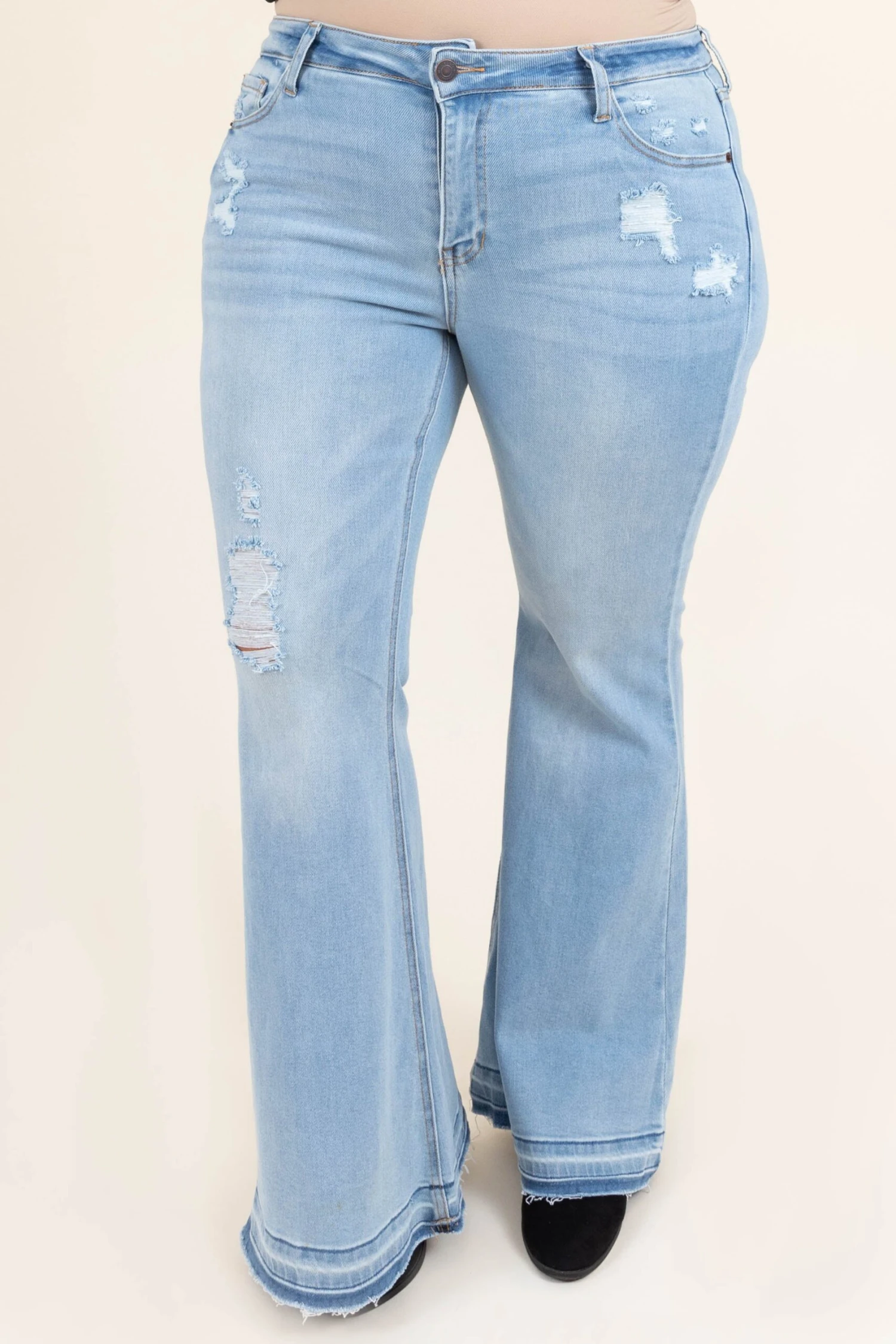 You’ll look like a total babe in these jeans! The flare jeans have made a comeback and we are rocking with it! The light wash is easily paired with all your favorite tops! Style these jeans with some cute accessories and solid tops for a trendy, chic look!
