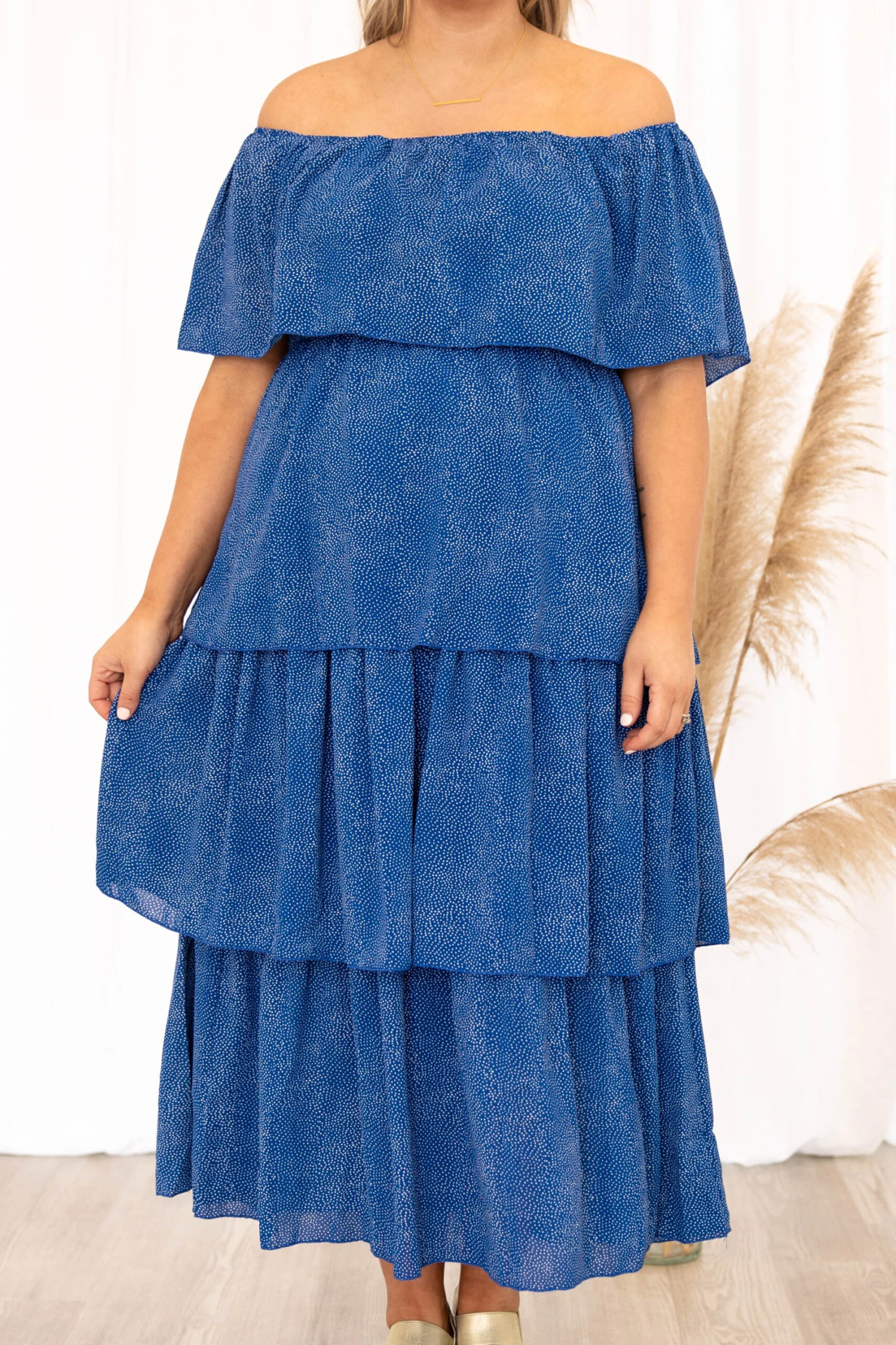 Your path should include adding this stunning dress to your cart! This gorgeous royal blue dress has a fun polka dot pattern that’s perfect for every season with a stunning off-the-shoulder fit we know you’re going to love! It’s figure-flattering, and absolutely beautiful for every event on your calendar! Dress it up with heels and a headband for your next night out!