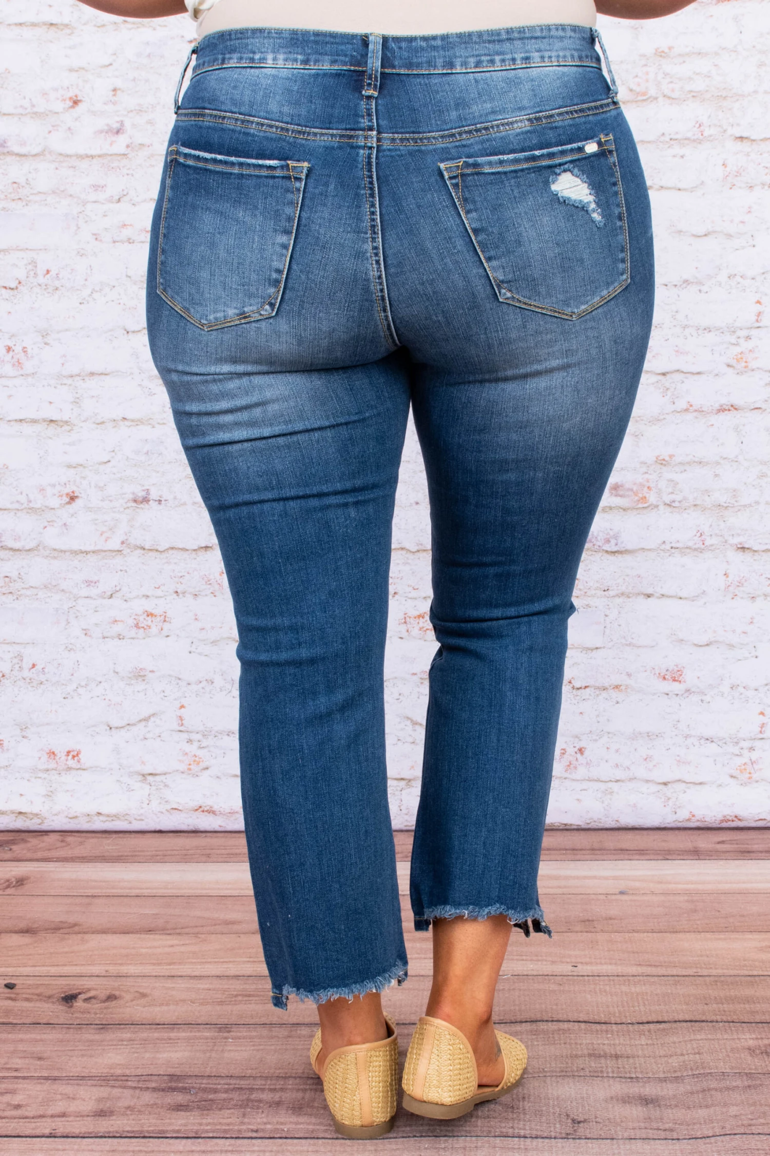 The search is over!! These are the jeans you’ve been looking for! These jeans have a classic dark wash you can dress up or down for every occasion! They’re figure-flattering, have trendy distressing, and feature the cutest cropped flare hemline! Simply, style these jeans with a basic tee and sandals for an easy everyday look!Â