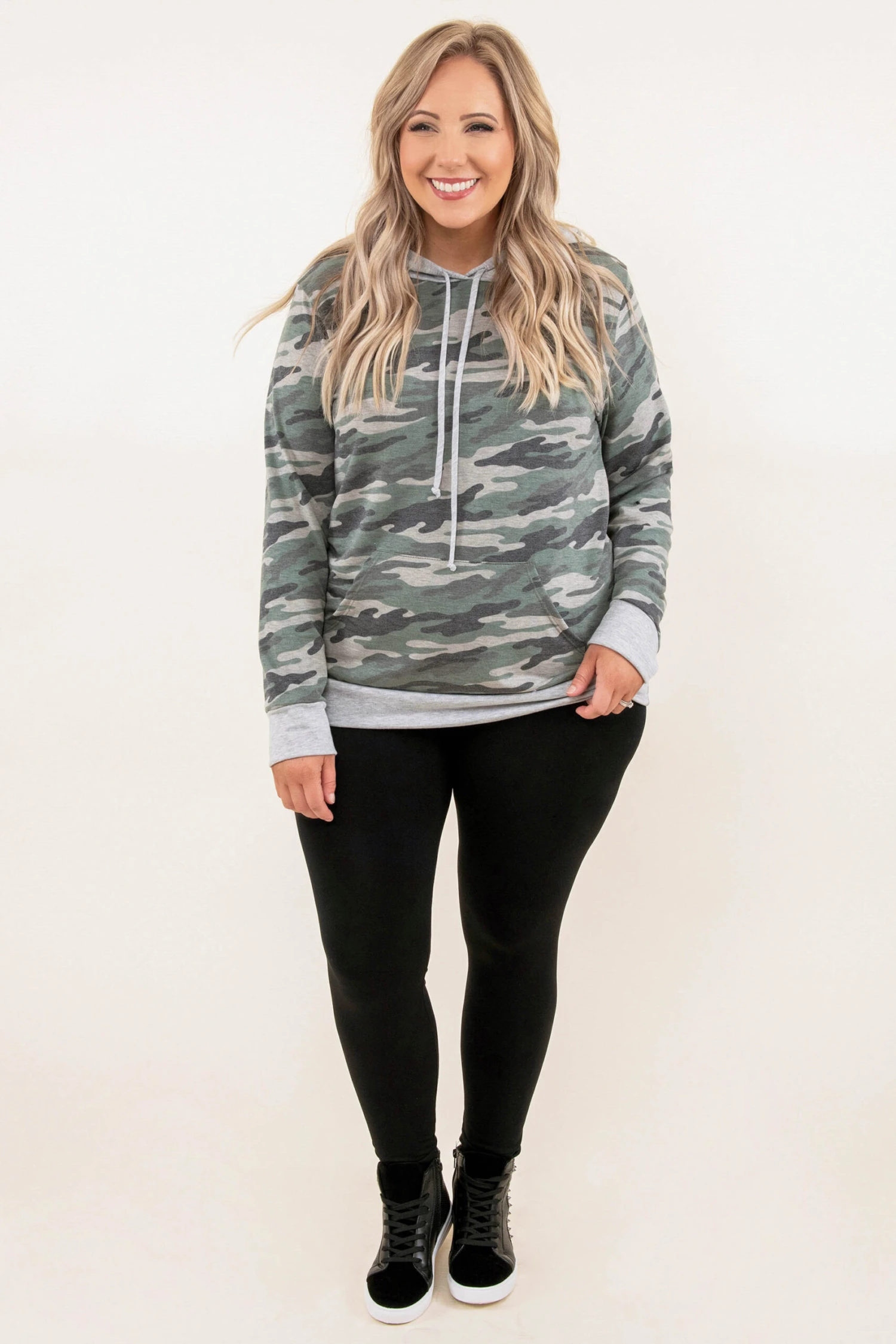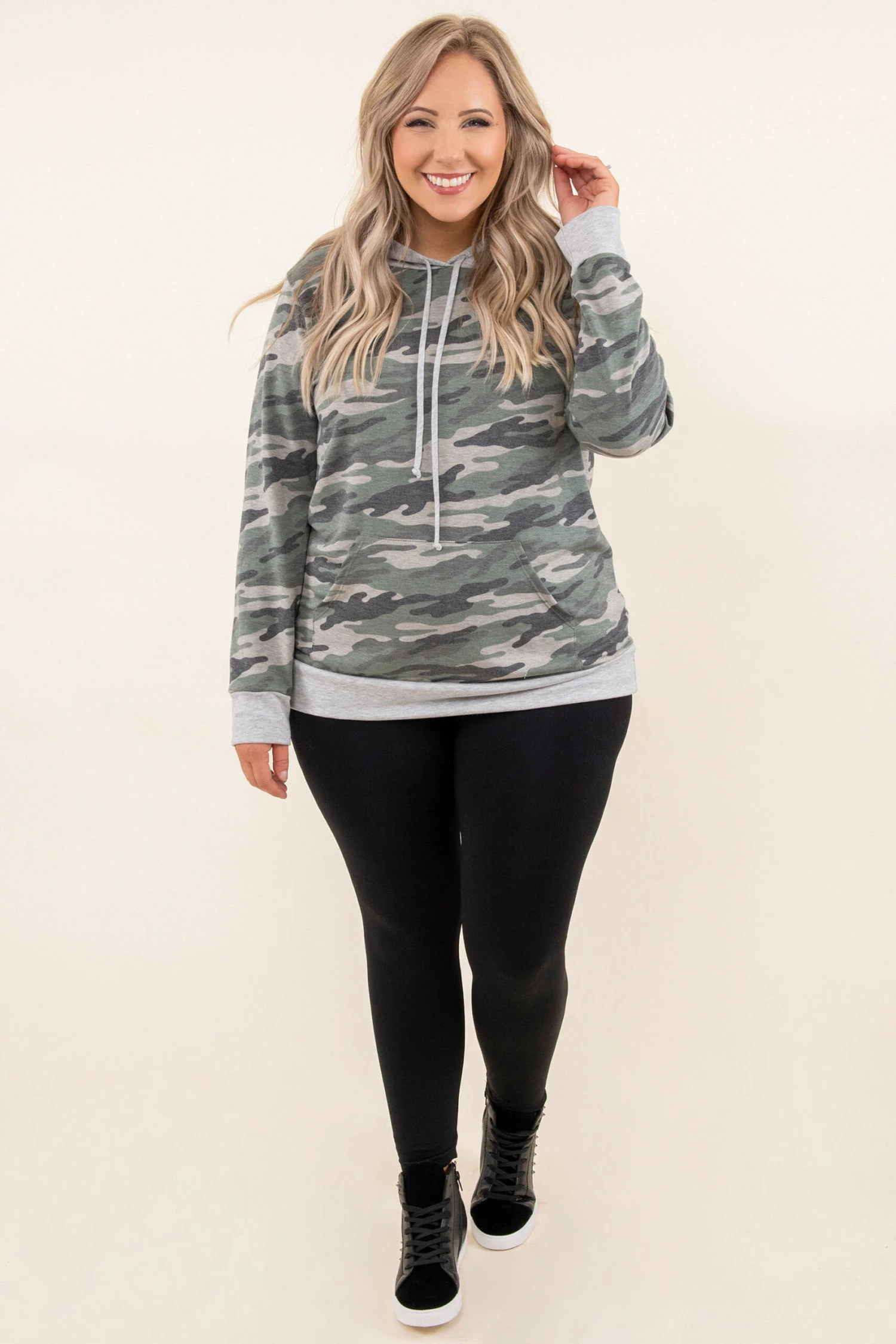 Camo is so on trend and we can’t get enough! This top has a classic camo print with neutral colors you can style for every occasion! It’s comfortable for all-day wear and features drawstrings for the ultimate design! Pair this top with your favorite skinnies and shoes and a casual, chic look!Â