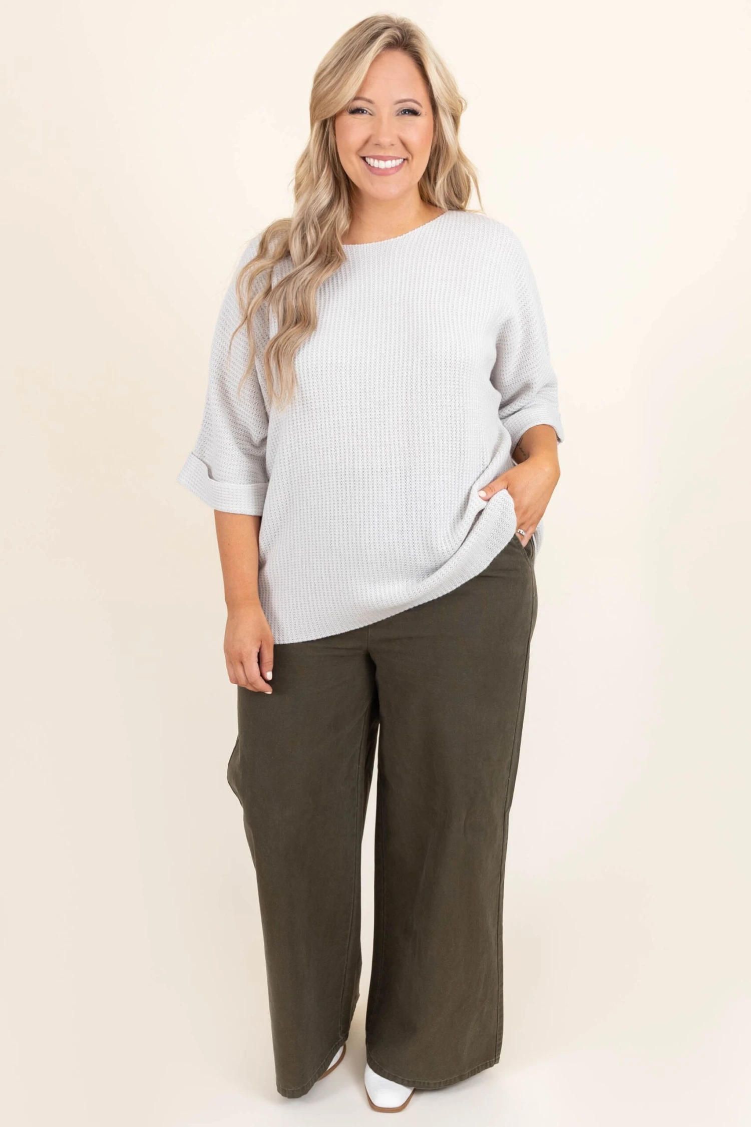Looking for some amazing pants? You’ve reached your destination! These pants have a fierce olive color and a stretchy, comfy waistline perfect for all-day wear! Style these with your favorite tops and booties for a classic, chic look!