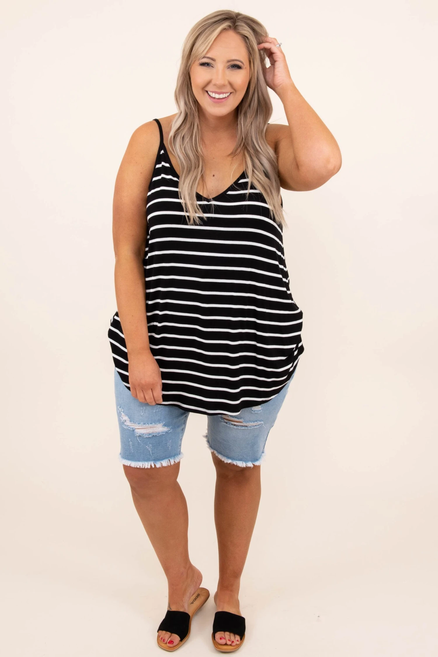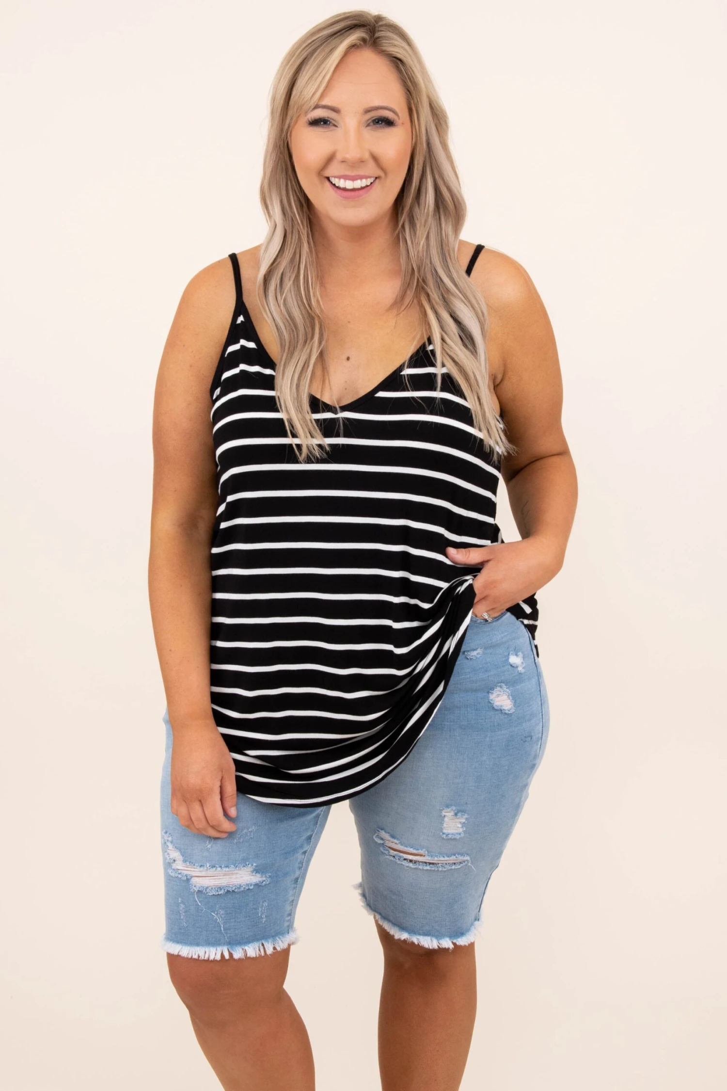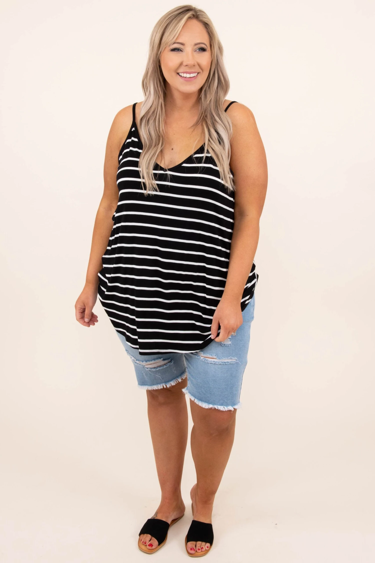 This top was made for a day at the beach! This tank has a simple stripe pattern with colors that are perfect for the season! It’s easy to style with your favorite shoes and accessories, has a flattering fit, and features a lightweight fabric you’ll want to wear all day long! Style this tank with shorts and sandals for your next vacation!